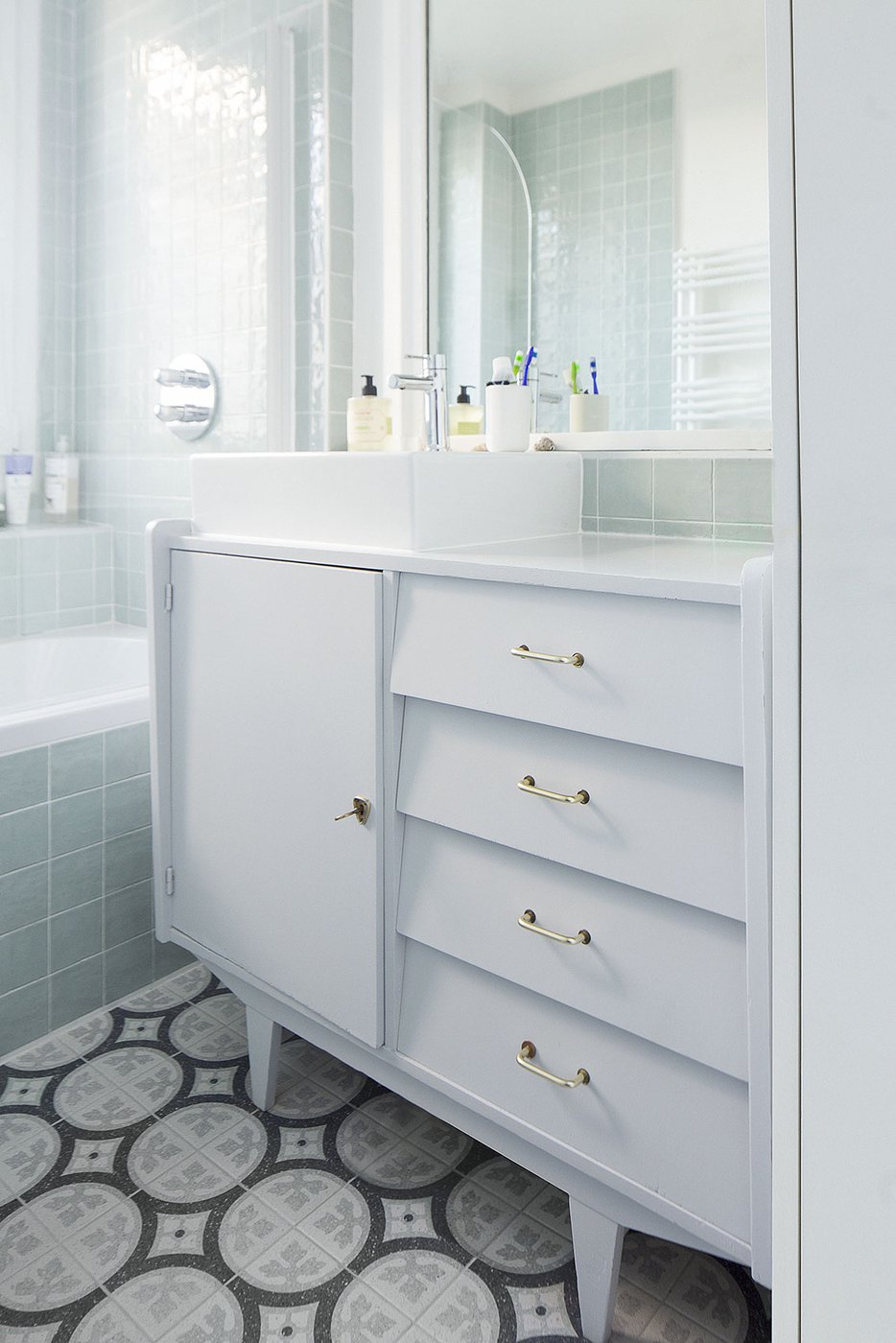 For a sophisticated, stylish Parisian apartment, the choice could hardly fall to any other series but these extra-light options by Marca Corona: the exquisite small-size Jolie bathroom tiles are thus complemented by the floral patterns of the Forme series on the floor, bringing a uniquely inviting air to the bathroom.