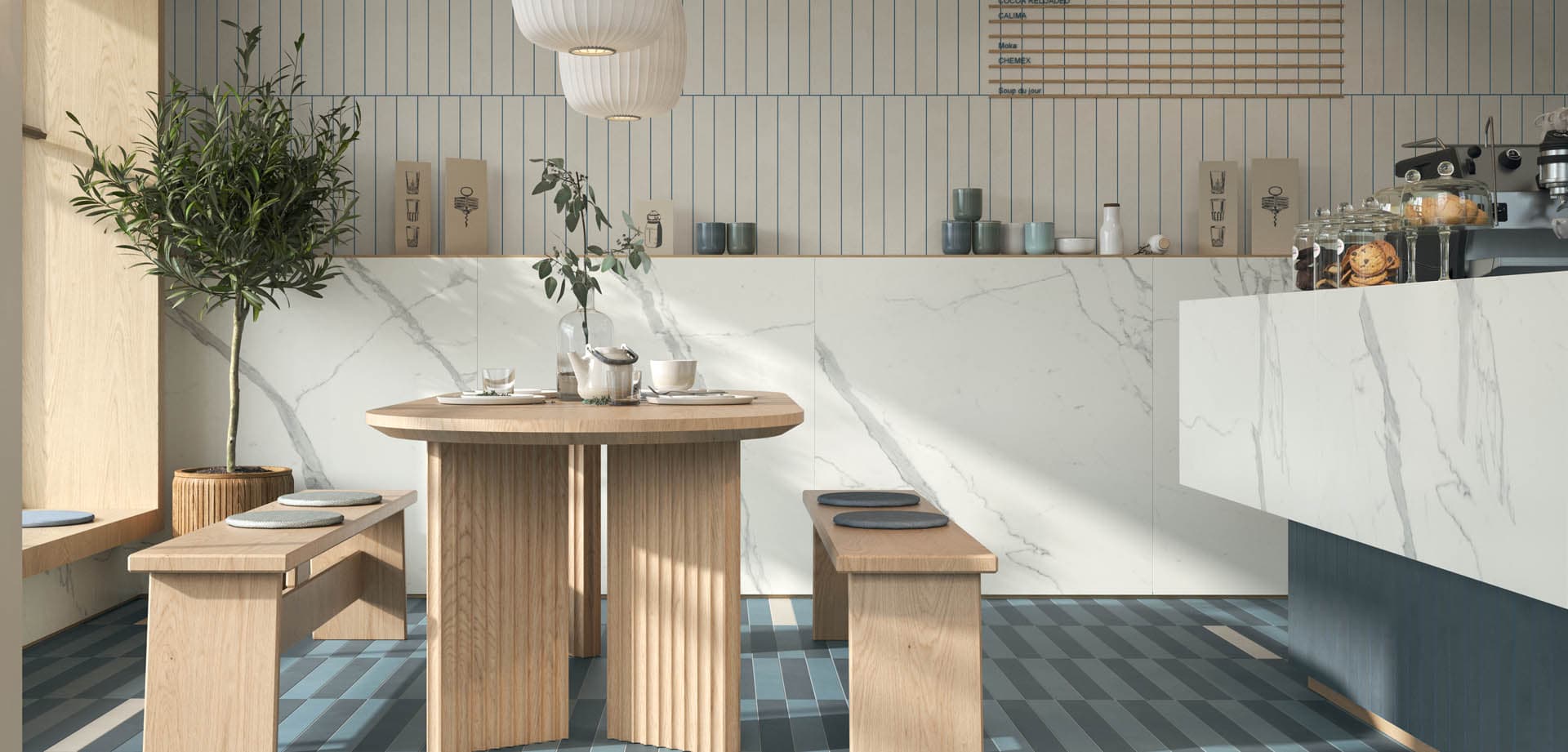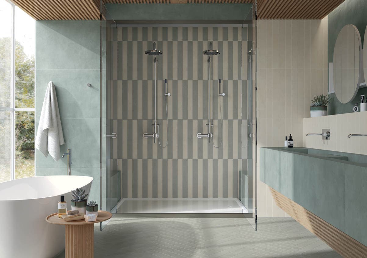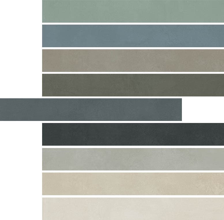 Longarine Brio se inspira en los largos ladrillos de cemento prensados a mano. De hecho, la colección se distingue por su original formato de 7,5x60 cm. Esta proporción única permite explorar nuevas posibilidades de colocación y combinaciones de colores, confirmando una versatilidad extremadamente funcional.