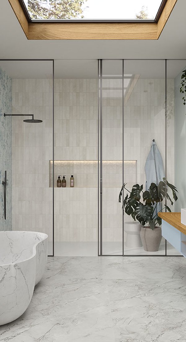 El estilo, la resistencia, la fiabilidad y la facilidad de limpieza son características esenciales en la elección de materiales para suelos y revestimientos de baños, y no hay mejor solución que las baldosas cerámicas. Paredes tridimensionales que recuperan un estilo clásico, revestimientos de lujo con efecto mármol, revestimientos con efecto de piedra o de colores que se combinan fácilmente con suelos de gres porcelánico modernos y elegantes.