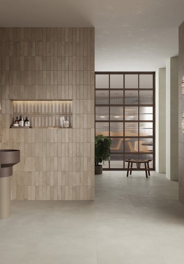 La elegancia moderna y versátil del marrón es reinterpretada por Marca Corona sobre superficies cálidas efecto madera y refinadas baldosas efecto cemento, desarrolladas para dar un toque íntimo y acogedor a los ambientes del hogar y de la hospitalidad. Las series madera incluyen estilos retro, influencias nórdicas y looks ultramodernos, transformando cocinas, dormitorios, salas de estar, baños y exteriores en ambientes tan íntimos como confortables, gracias a la superior resistencia y practicidad de la cerámica.