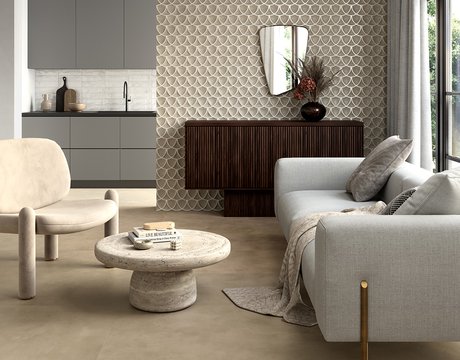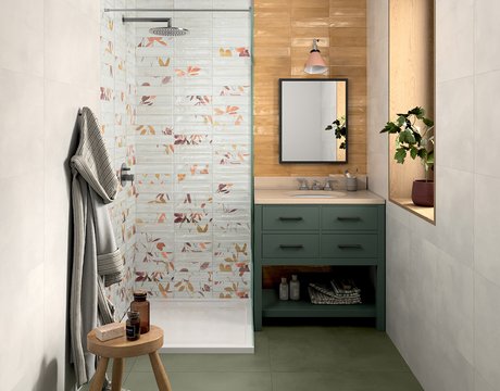 El delicado efecto brillante realza el material y destaca sus detalles gráficos, para un aspecto aún más auténtico. Multiforme es un material neutro que cobra vida gracias a soluciones decorativas que van desde el pequeño Brick de 7,5x30 hasta la gran placa de 120x278. La sugerente pieza decorada en cascada de Fronde cobra vida en el gran formato en una placa de 120x278, para interiores con un impacto visual seguro. La estructura de Inciso, combinada con el fondo de un acabado superficial suave como la seda, invita a una exploración táctil de las irregularidades del material. El pequeño formato Brick 7,5x30 crea un ambiente sugerente que destaca la sofisticación de las imperfecciones de las cosas hechas a mano.
