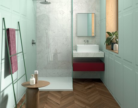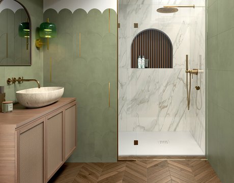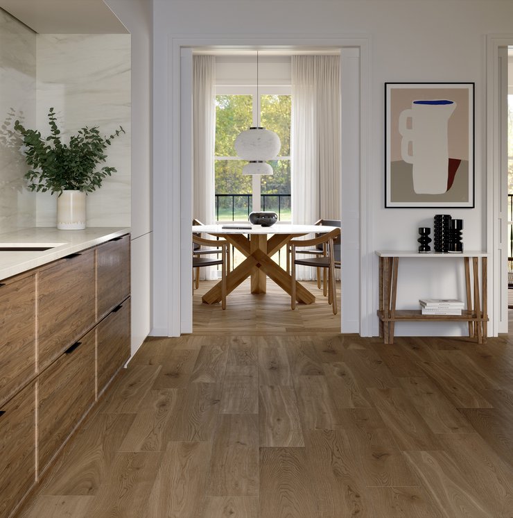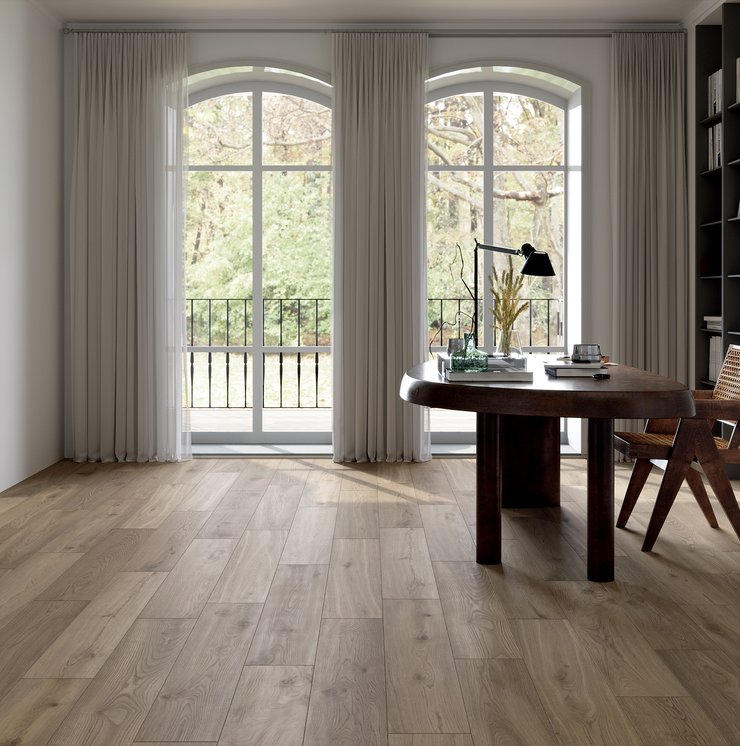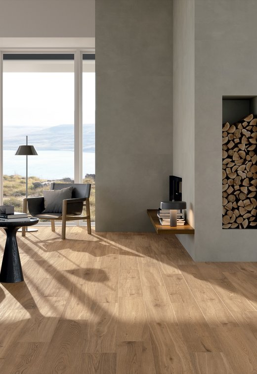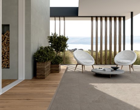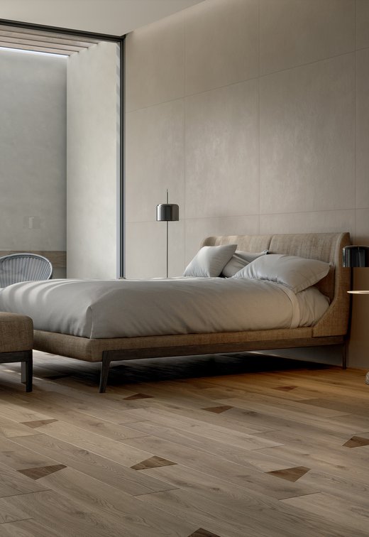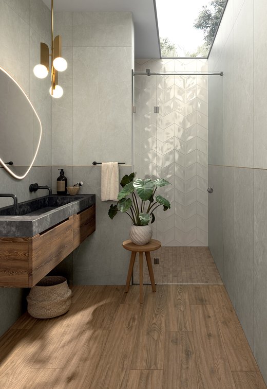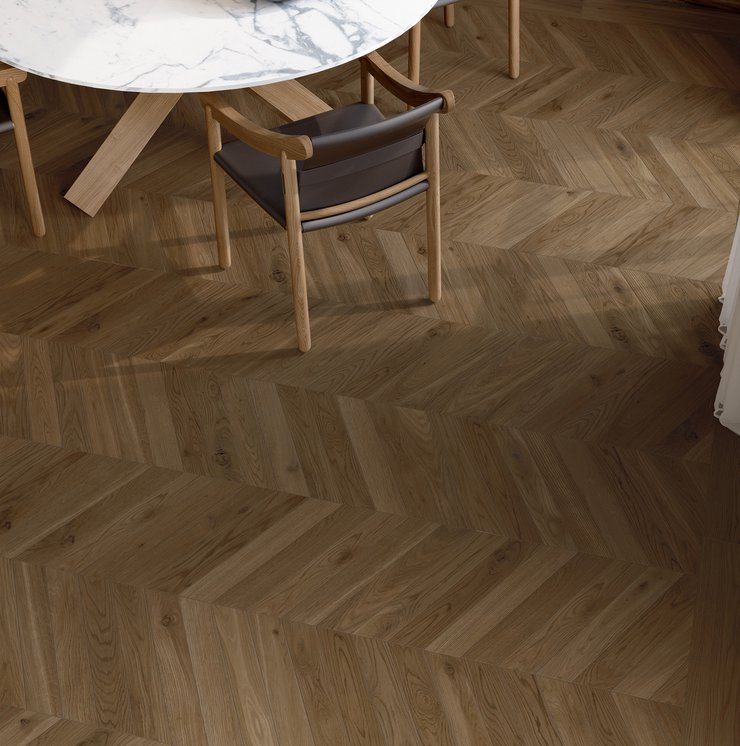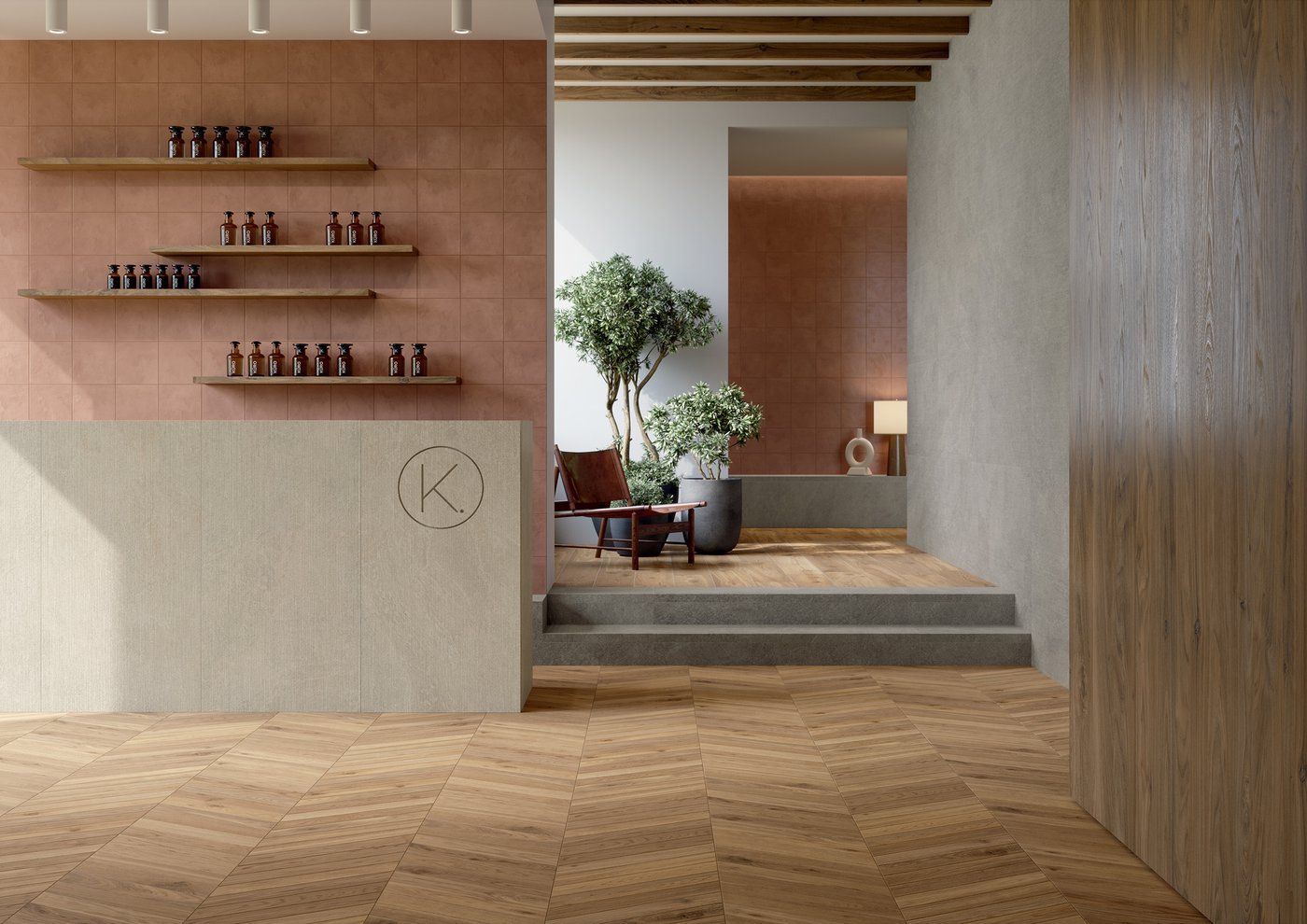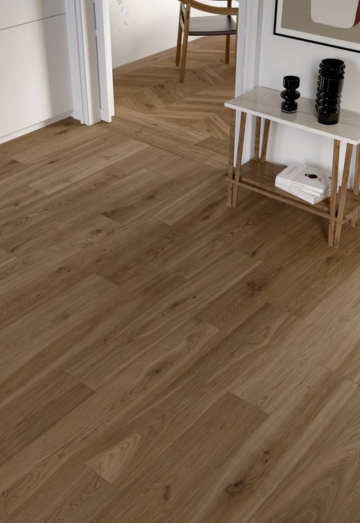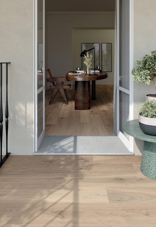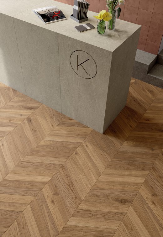 La colección tiene un acabado suave al tacto y con un carácter extremadamente natural. Los pavimentos revelan un material único, cuya superficie refleja la luz con un ligero claroscuro. El efecto recuerda el resultado del proceso de aplicar aceite en la madera, donde las vetas opacas fluyen elegantemente sobre un fondo con un acabado semimate que atrapa el reflejo de la luz. Además del formato 20x120, Elisir Royal reinterpreta la tradición del clásico patrón de colocación Chevron para crear elegantes simetrías, ideales para ambientes acogedores y contemporáneos. Resistente, duradero y seguro: el acabado Grip de Elisir Royal se ha diseñado para ambientes exteriores y superficies que requieren soluciones antideslizantes excepcionales.