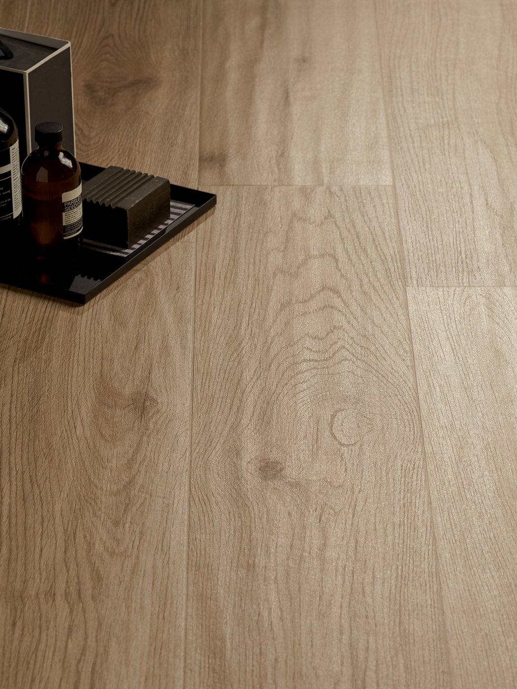 Todo el encanto de la madera envejecida por el tiempo, pero con un estilo contemporáneo. La colección Elisir Royal reproduce con sumo realismo los rasgos de la identidad de la madera obtenida de los árboles más majestuosos. Elisir Royal representa una colección cerámica viva y cambiante, con diseños gráficos repletos de nudos, vetas y colores que destacan la naturaleza en todos los aspectos. Los colores Fumè y Castano para crear ambientes contemporáneos con un gusto más moderno y más tradicional; Beige y Dorato para interiores extremadamente acogedores y luminosos.