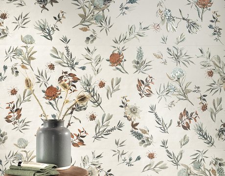 Una búsqueda en el fantástico y exuberante mundo botánico en perfecto equilibrio entre versatilidad e impacto visual. Mirabilia de Marca Corona aporta nueva vitalidad al efecto de papel pintado con una propuesta con grandes posibilidades de combinación estudiada hasta el más mínimo detalle para personalizar los espacios con el fin de conferirles un estilo original y altamente singular.
