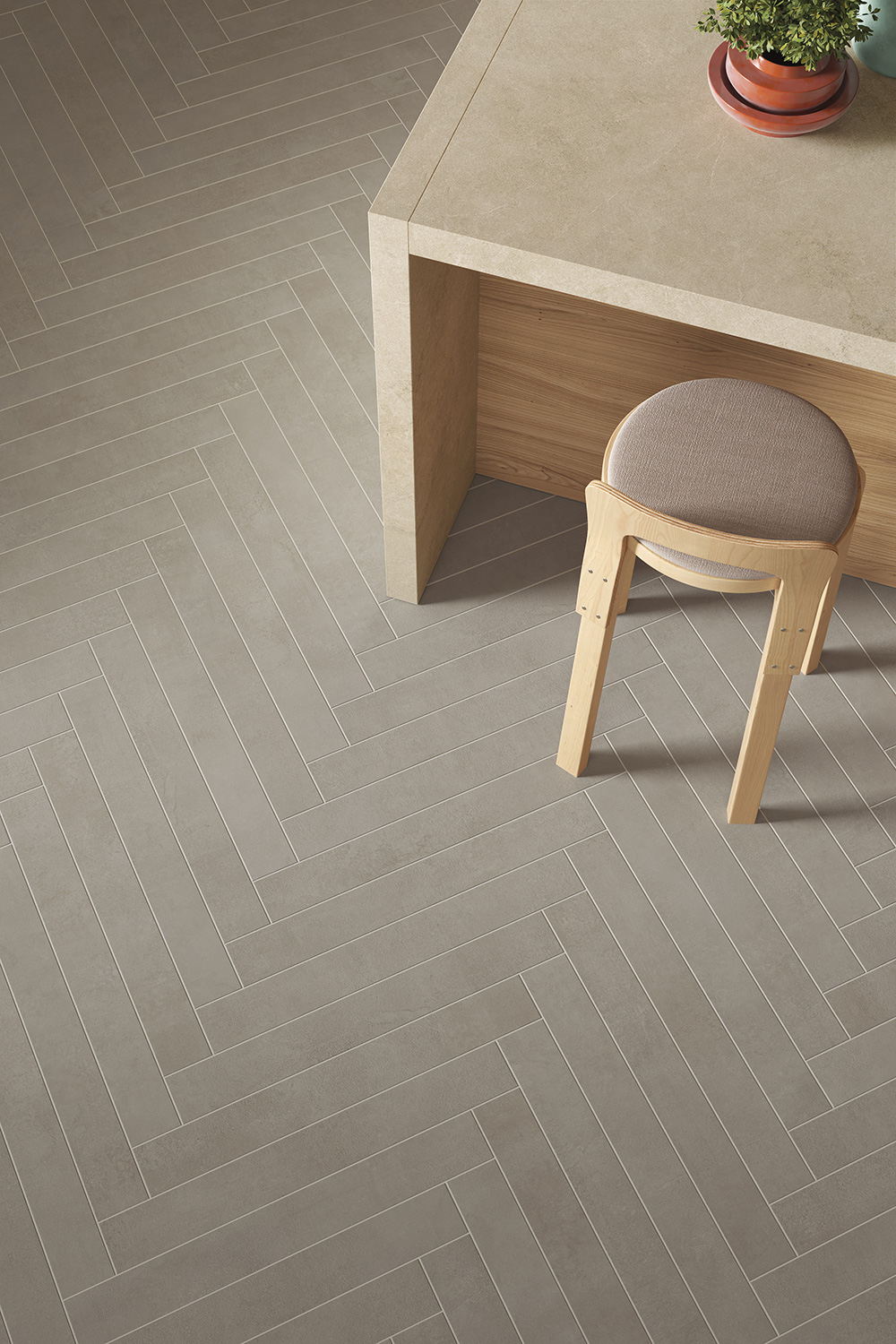 Las superficies no rectificadas y la paleta de colores neutros de Longarine Calcecreta se pueden aplicar perfectamente a espacios clásicos y modernos para crear ambientes acogedores y sofisticados.