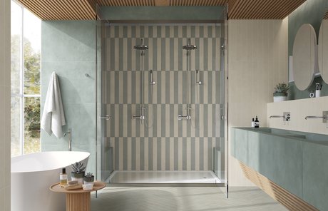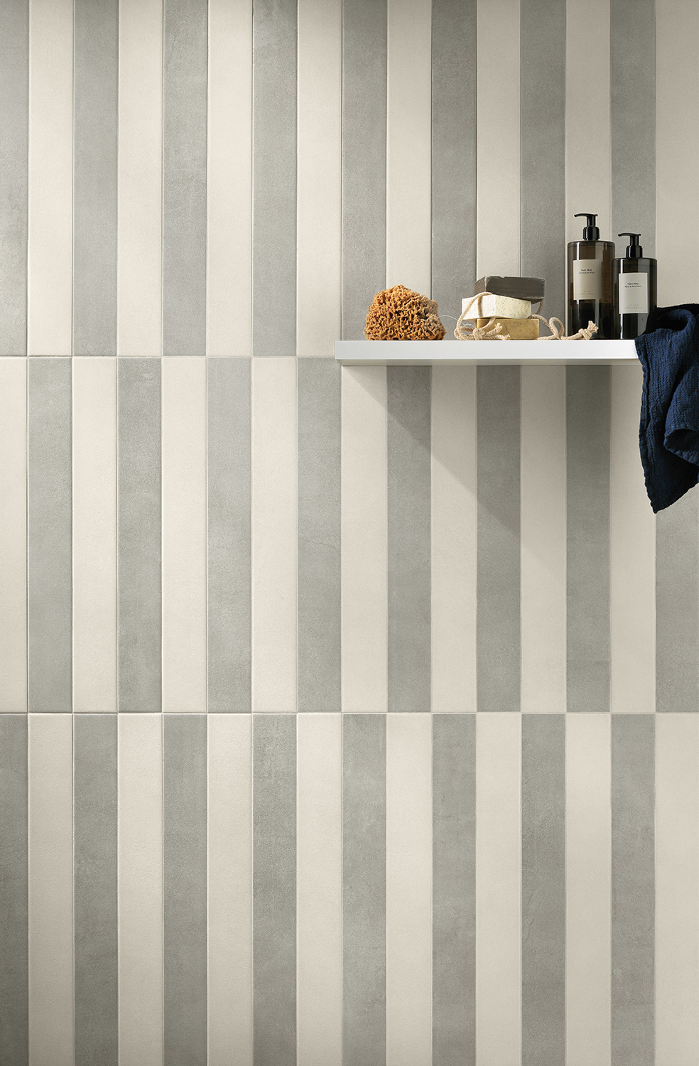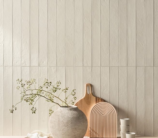 Longarine Calcecreta reinterpreta en el formato 7,5x60 la antigua mezcla trabajada a mano desde la óptica del interiorismo contemporáneo. Los tonos naturales y la irregularidad de las superficies aportan autenticidad a cada pieza, creando un vínculo directo con la tradición. La colección también incluye Manto, una decoración que añade un elemento de materialidad y variedad de detalles a las superficies.