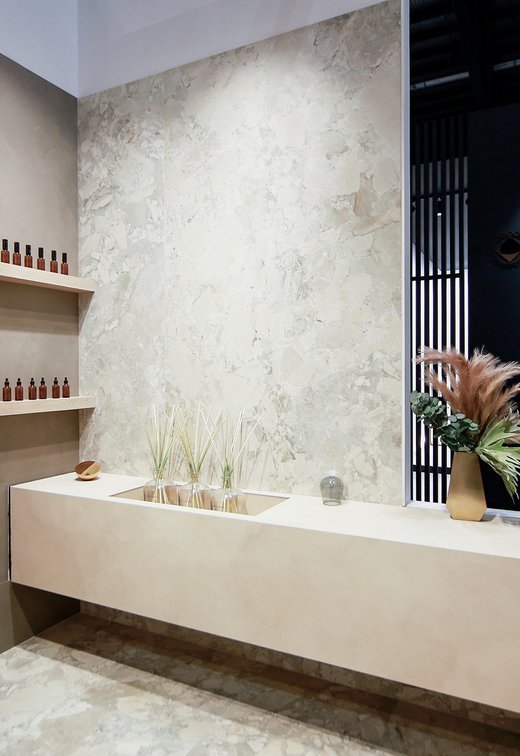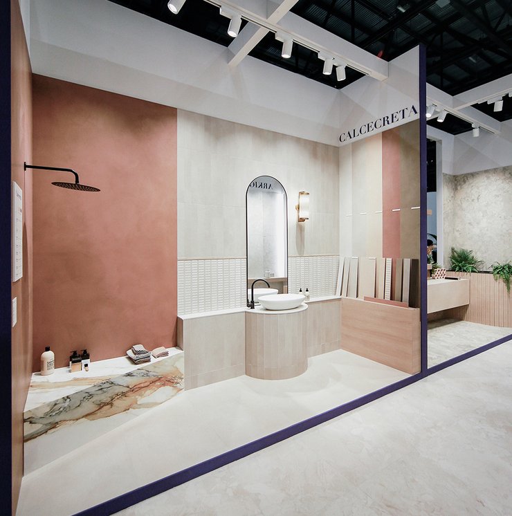 Dentro del pabellón de Ceramics of Italy, Marca Corona cautivó al público con una instalación inmersiva y fascinante, en línea con el concepto exotic appeal: una invitación a dejarse sorprender por aquello que proviene de lugares y culturas lejanas, la expresión de una belleza diferente y al mismo tiempo universal manifestada por superficies cerámicas Made in Italy que reinterpretan lo exótico de manera contemporánea.