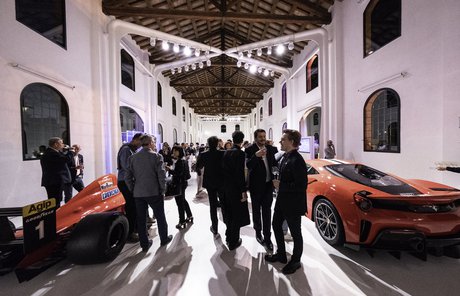 Pero nuestro viaje a la belleza tenía que terminar de la mejor manera, fuera de Cersaie, más cerca de donde Marca Corona fue fundada en 1741 y donde todavía sigue fabricando sus cerámicas. Queríamos dar las gracias a quienes, desde hace años, nos acompañan en nuestra evolución de manera especial, y de esta voluntad ha nacido la velada “Marca Corona goes fast”, no una simple cena de gala, sino una experiencia inolvidable; una demostración de la gratitud y de la excelencia de nuestra empresa, ¡siempre un paso por delante en cuanto a estilo y tendencias!