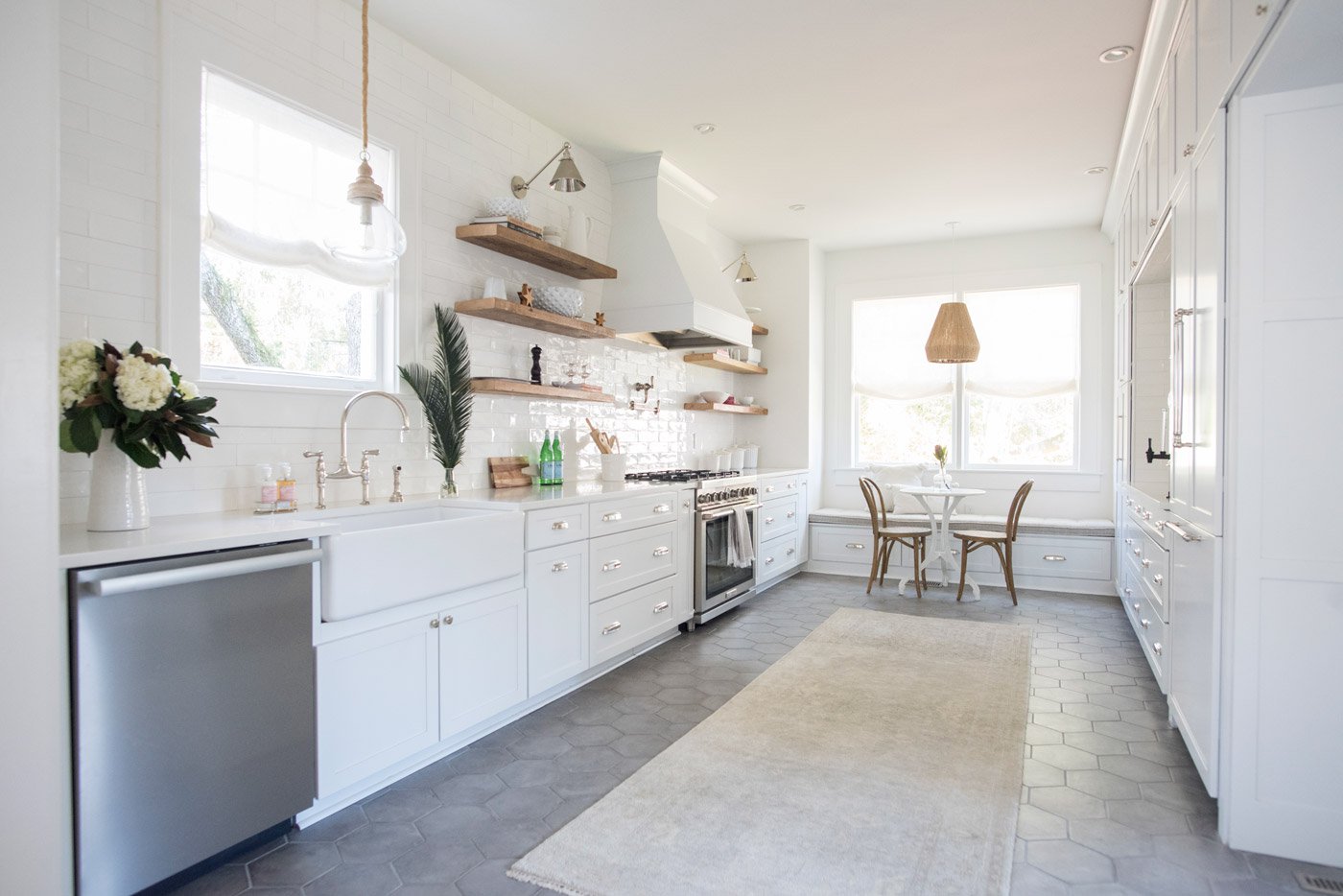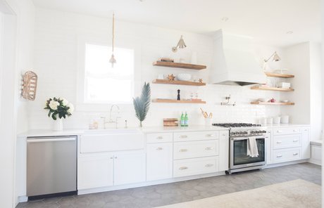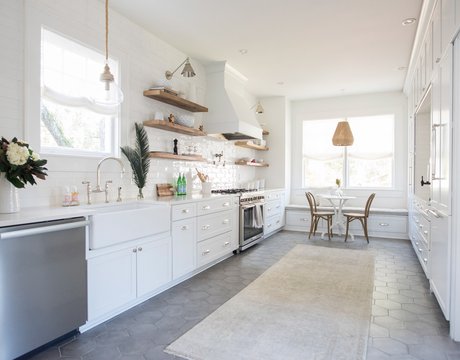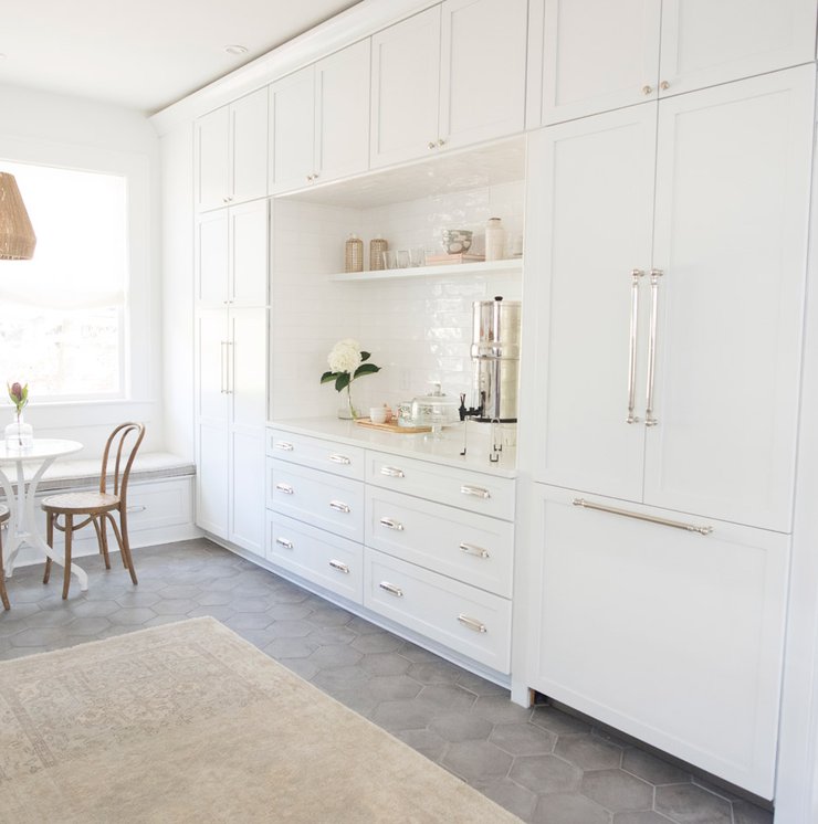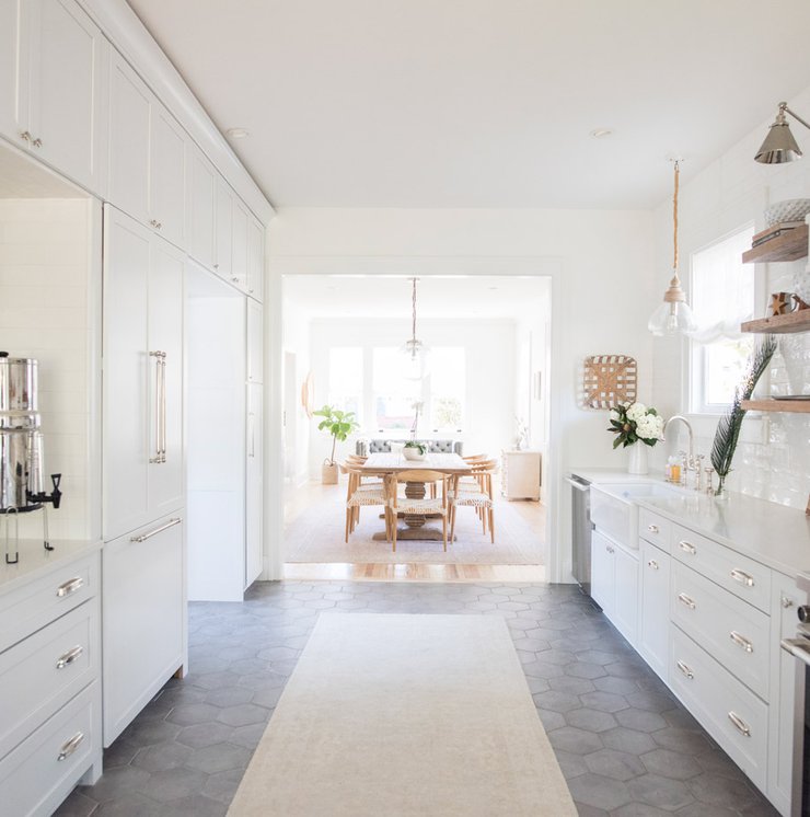 Para la renovación de esta villa georgiana, se ha elegido la colección efecto cemento Terra, que ofrece elegantes superficies enyesadas de tamaños originales, incluido el hexágono. El estilo clásico y minimalista de la vivienda se acentúa así en la cocina y en la soleada terraza, gracias a la combinación de mobiliario claro y pavimentos color antracita Marca Corona.