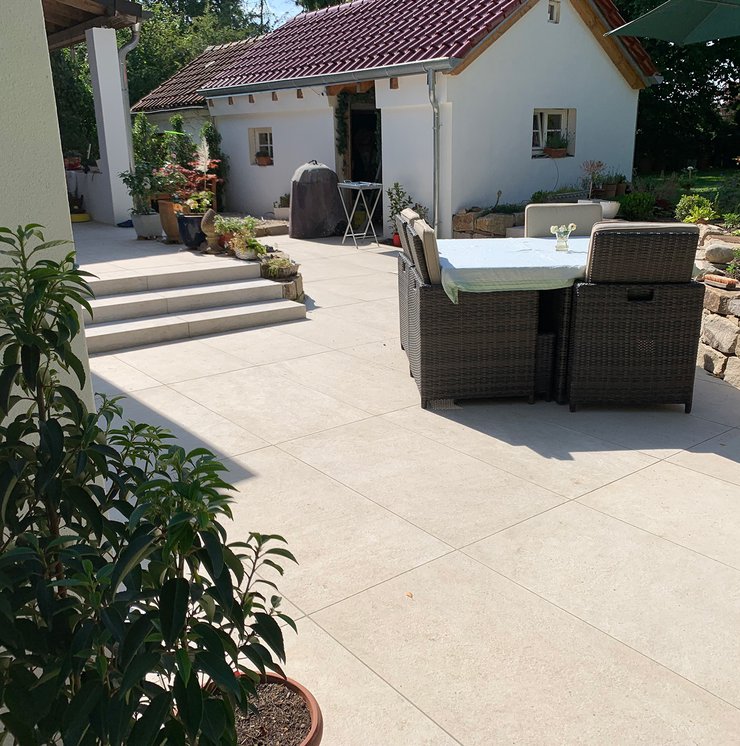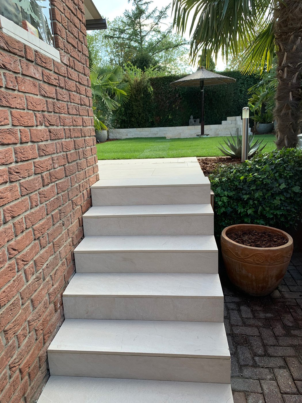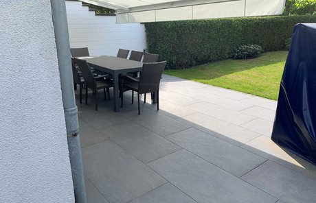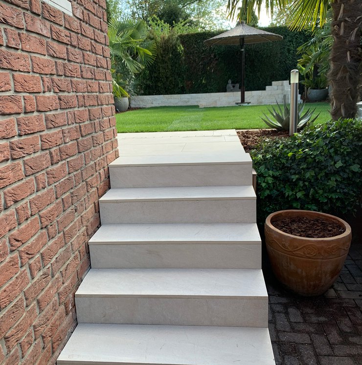Para embellecer los exteriores de este chalé privado, inmerso en el verdor de Dusseldorf, se eligieron las cerámicas Made in Italy de Marca Corona. Las superficies efecto piedra de Matrix, en la versión espesorada HiThick, logran delimitar y valorizar los diferentes espacios exteriores, garantizando resistencia y fiabilidad.