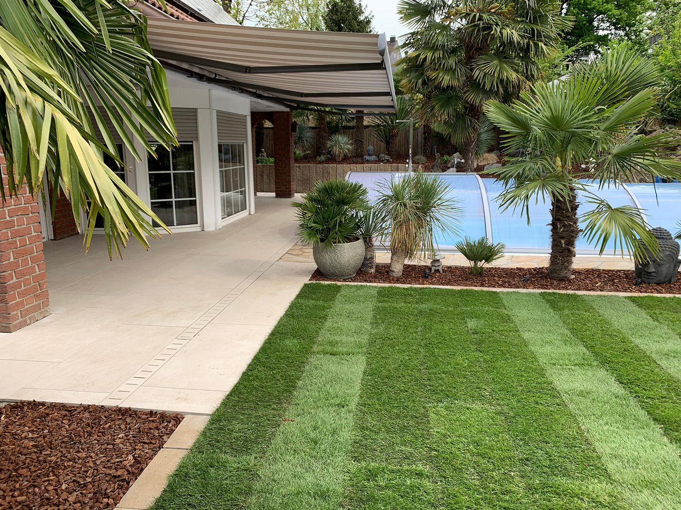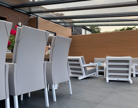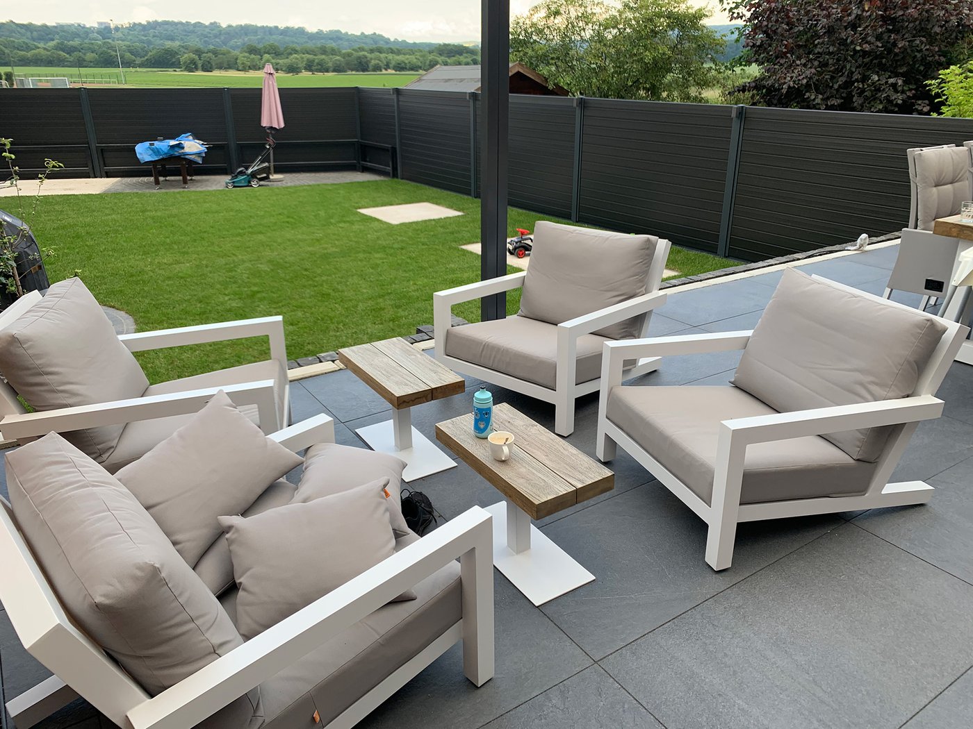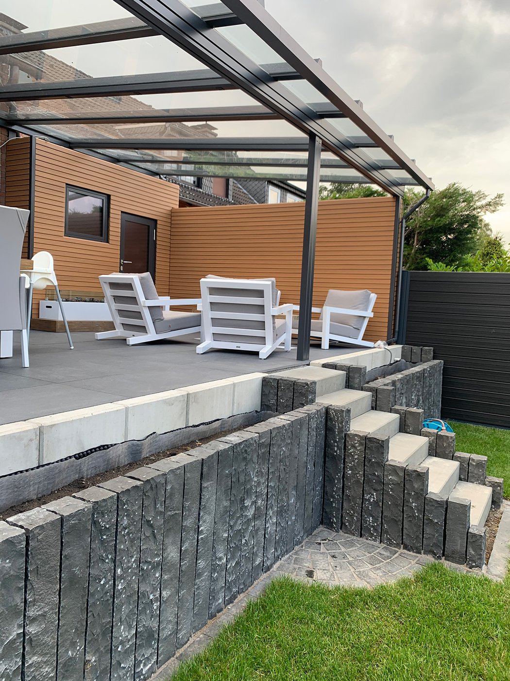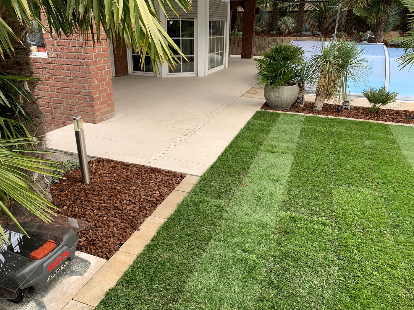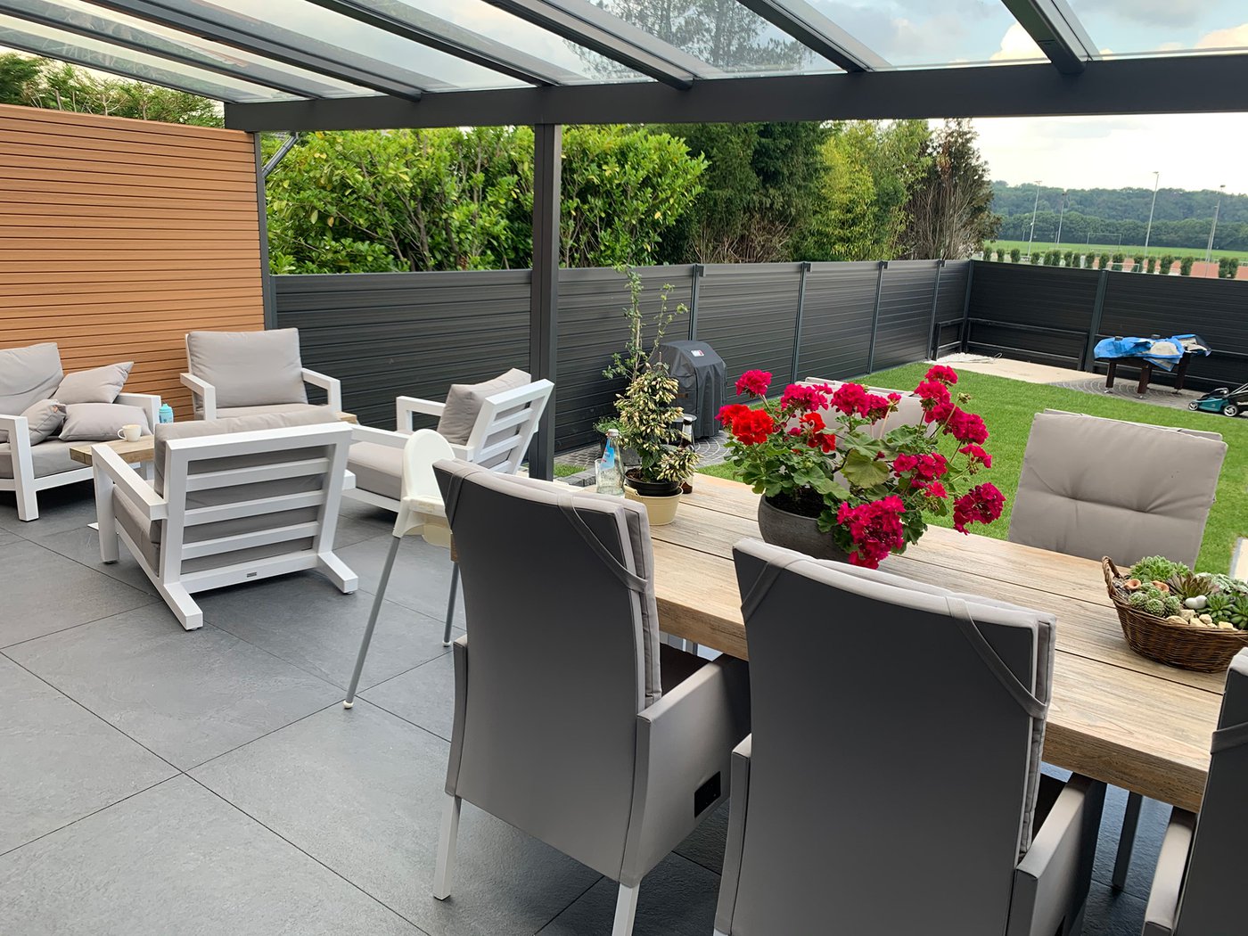 Con el tono beige, Matrix transmite una atmósfera elegante y mediterránea al jardín de la entrada y a la zona de la piscina, donde se requiere máxima seguridad y prestaciones antideslizantes. En el patio trasero, con zona de relajación y barbacoa, encontramos la variante Dark, que imprime un carácter más moderno y atrevido.