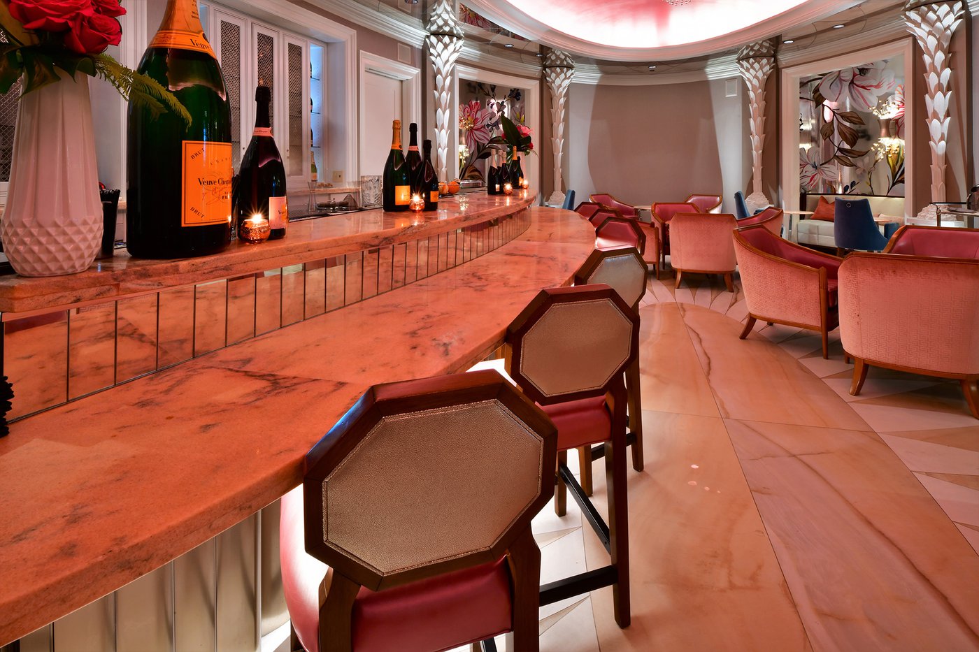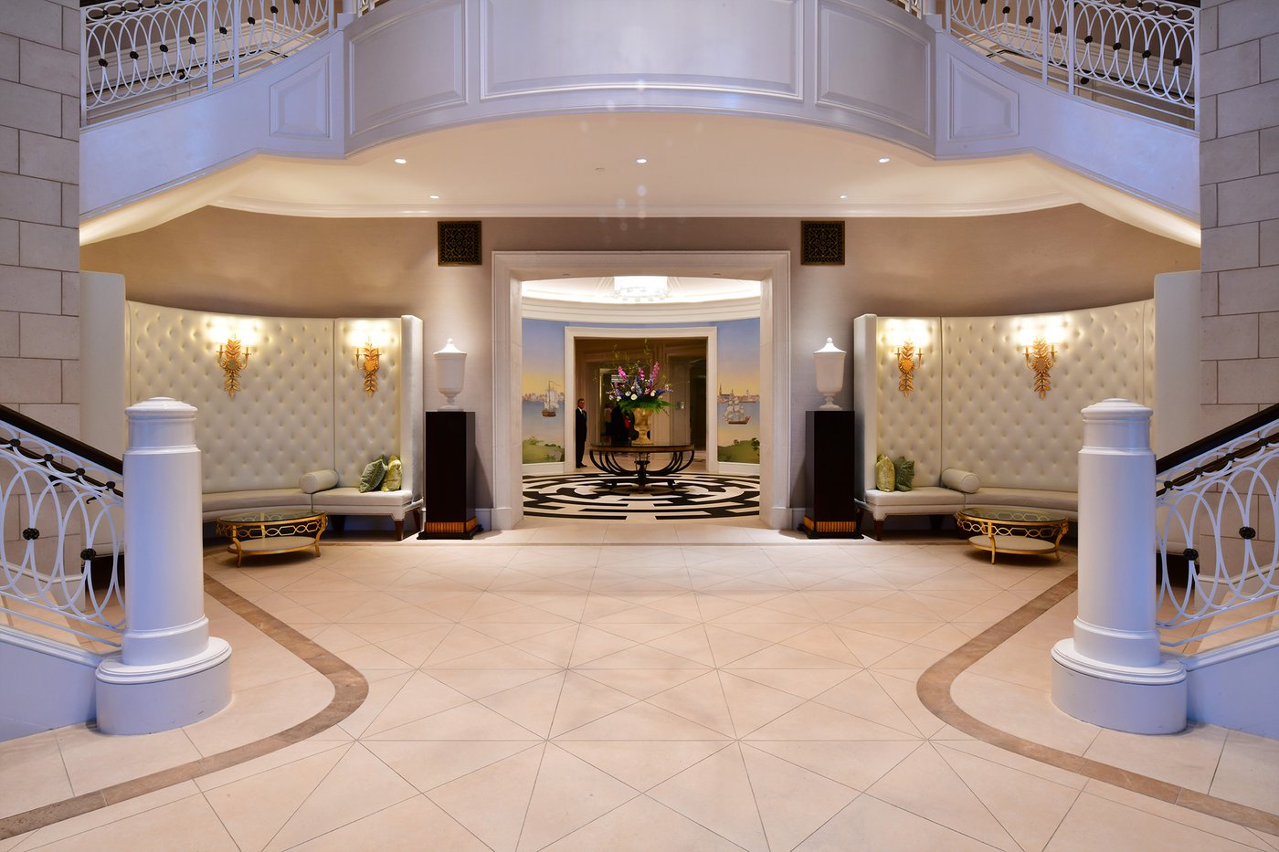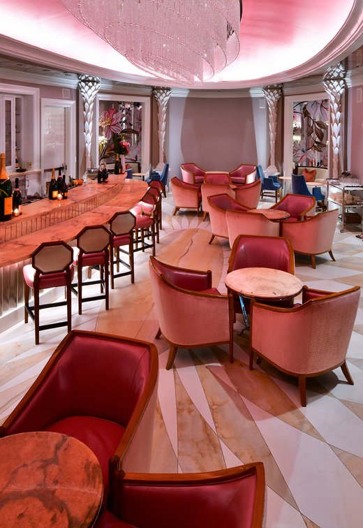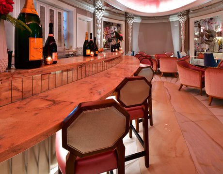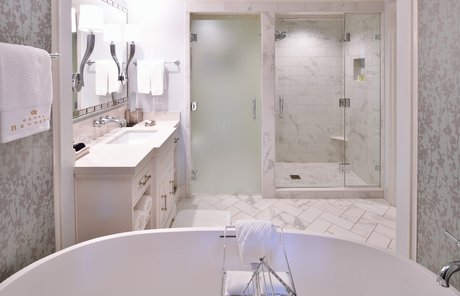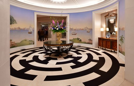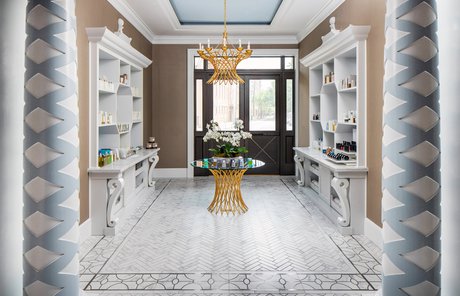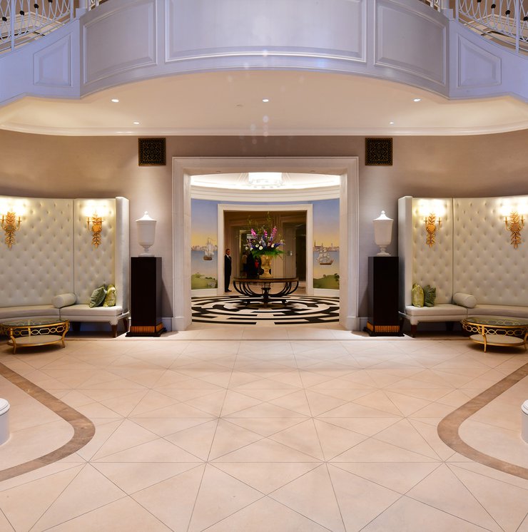 Los pavimentos y revestimientos de gres efecto mármol de la colección Deluxe se encuentran en la boutique del spa y en los aseos de las suites privadas.