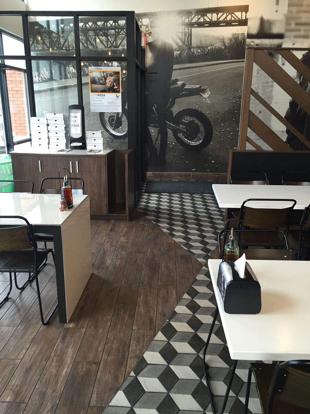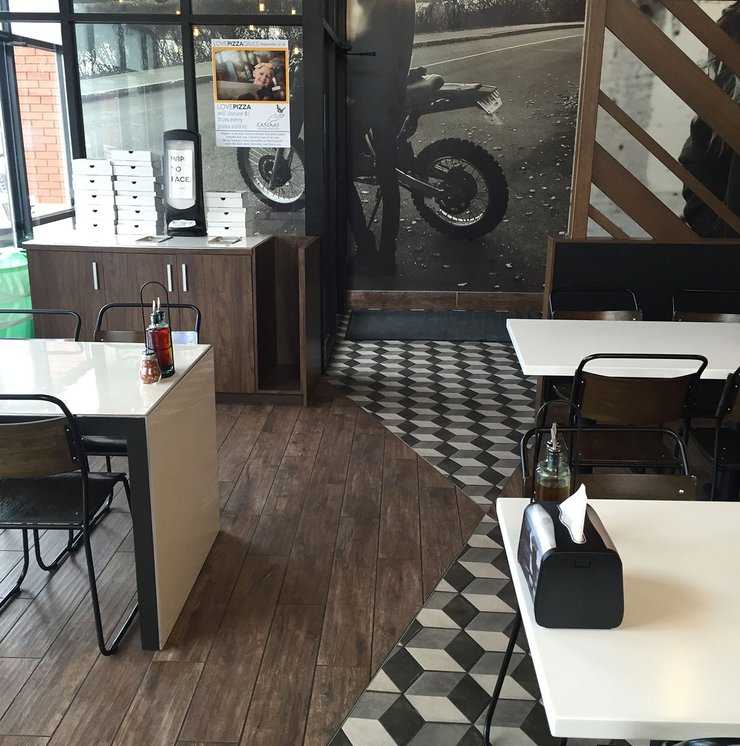 No hay duda de que los propietarios de este restaurante de Alberta aman la cultura italiana: el aroma de las pizzas y el estilo Made in Italy de las elegantes baldosas hidráulicas Terra reciben a los visitantes. El formato hexagonal en tonos oscuros y gris efecto yeso protagoniza el comedor y los baños, creando un ambiente moderno y acogedor.