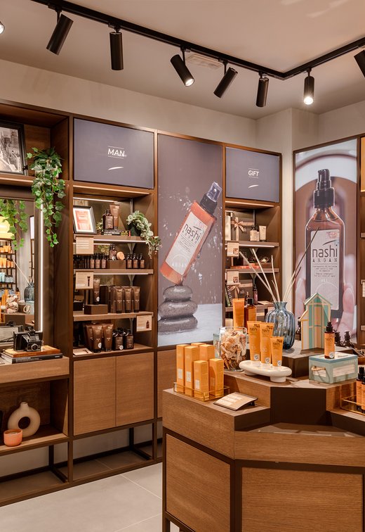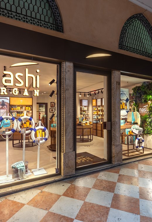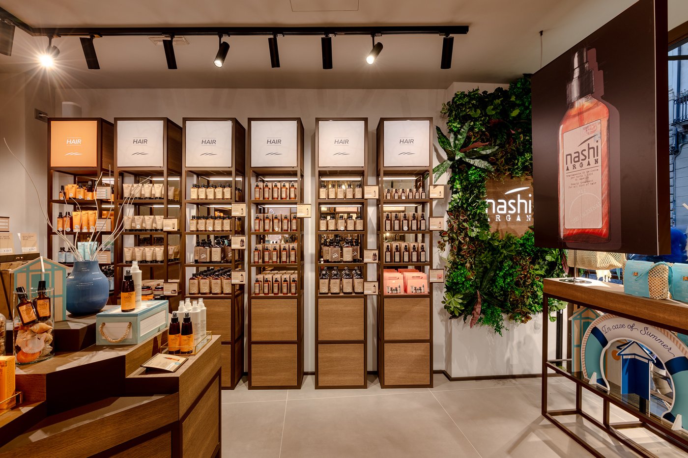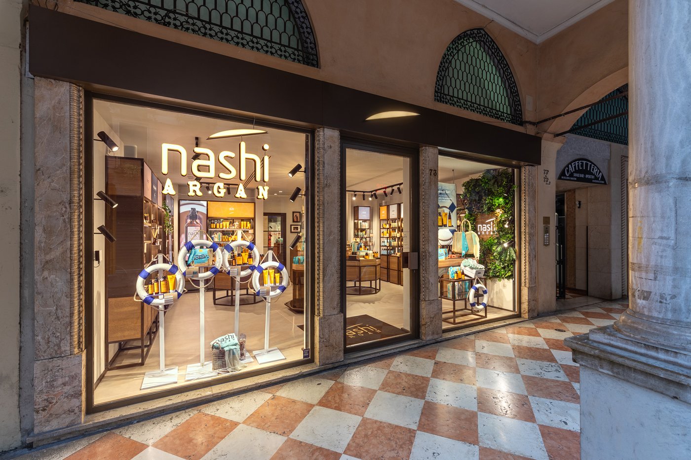 Nashi Argan es una marca de cosméticos y productos profesionales para el cuidado del cabello 100% made in Italy, con una amplia presencia en el país transalpino gracias a un gran número de puntos de venta y tiendas monomarca: entre ellas, la nueva tienda de Vicenza, un local de 80 m² inaugurado en 2023.