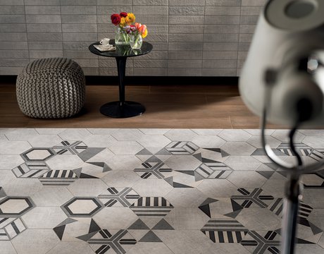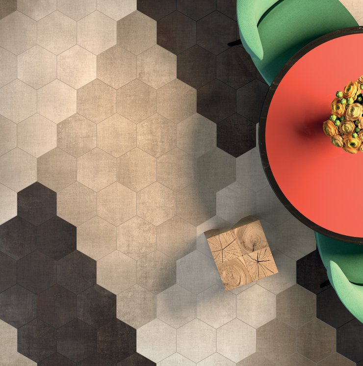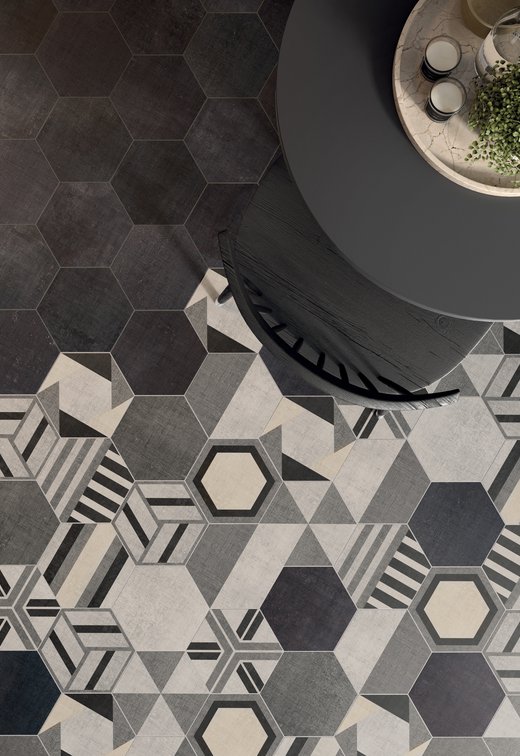TexTile des carreaux cementine hexagonaux pour des superpositions surprenantes