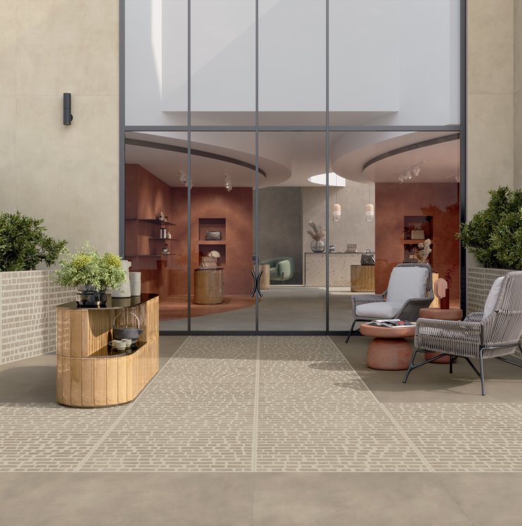Avec Multiforme Dune, il est possible de réaliser des projets caractérisés par une continuité maximale entre intérieur et extérieur. Les surfaces en finition naturelle pour intérieur peuvent être associées au format 30x60 en épaisseur 9 mm et finition Grip et à deux formats 80x80 et 120x120 en épaisseur 20 mm et finition texturée.