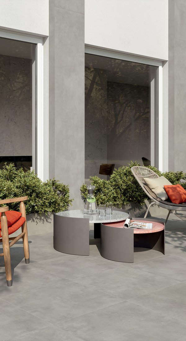 Carreaux pour l’extérieur en grès effet pierre, revêtements effet ciment en grandes plaques rectifiées, surfaces effet bois et parquet d’inspiration nordique : ce ne sont là que quelques unes des déclinaisons de notre gamme de carreaux élégants, conçus pour des sols extérieurs impeccablement versatiles et fonctionnels.