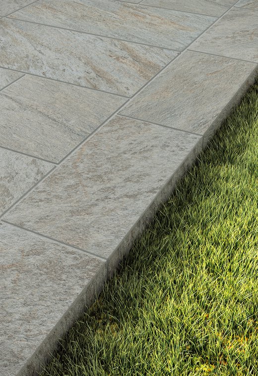 Vie della Pietra transpose la beauté authentique de la pierre sur deux formats inédits, les 22,5x22,5 et 22,5x45 non rectifiés. Les deux petits formats choisis donnent un caractère moderne à tous les extérieurs résidentiels, des petits jardins aux terrasses, des piscines privées aux grands espaces partagés. Cette proposition de sol se compose de 8 surfaces alternatives, Chianca, Falesia, Foehn, Altavalle, Quarzite, Oriente, Alpinia e Galassia, chacune étant le fruit d’une inspiration graphique et matérique diverse, et déclinée en une vraie tonalité exclusive de couleur. Les 8 tonalités neutres sélectionnées donnent vie à une palette aussi éclectique qu’équilibrée. La fidélité aux matériaux d’inspiration, la stonalisation graphique volontaire, la modularité des formats proposés et la disponibilité de 2 épaisseurs différentes, 9 et 20mm, font de Vie della Pietra une solution incroyablement polyvalente. Les deux formats de Vie della Pietra sont conçus pour permettre des poses modulaires : on conseille un joint de 3 mm pour l’épaisseur de 9 mm et de 4 mm pour la version forte épaisseur HiThick.