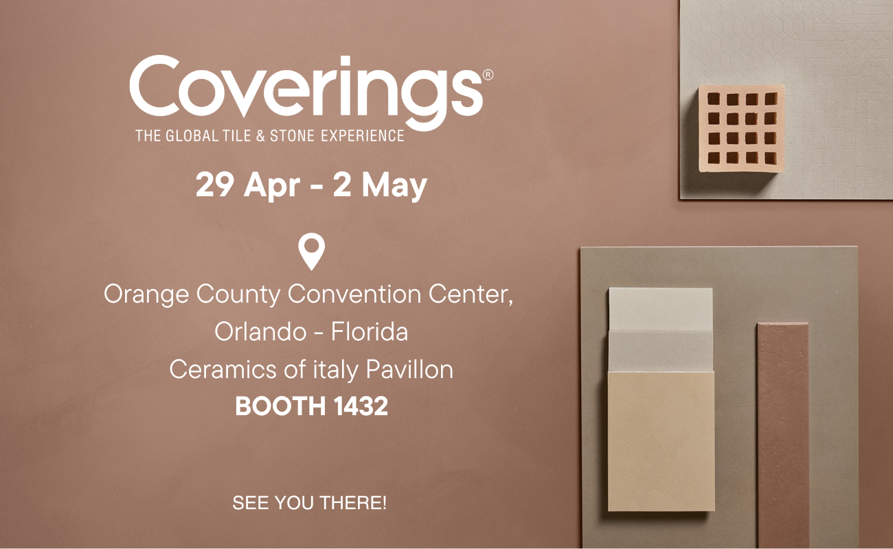À Coverings Orlando 2025, vous allez découvrir l’exposition complète de nos surfaces céramiques, fruit d’une recherche esthétique, qualitative et technologique soignée, caractérisée par l’évolution Made in Italy.