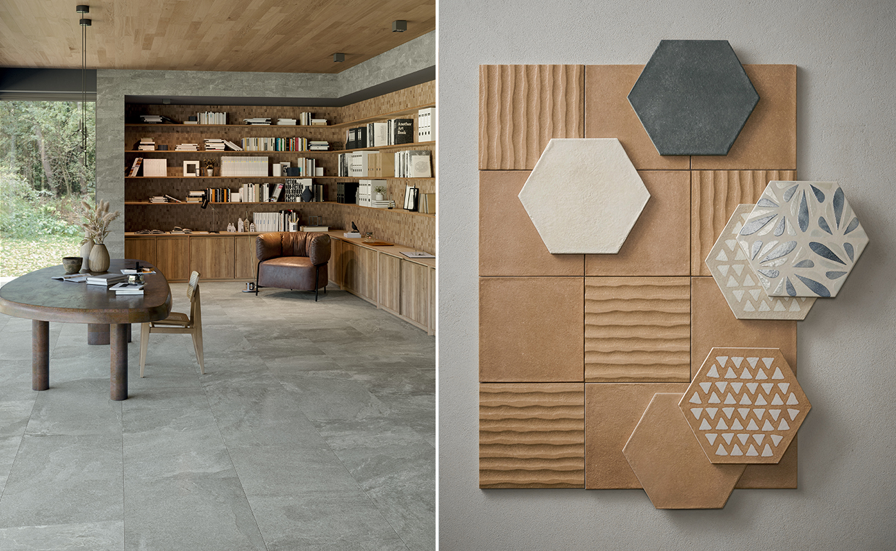 Terracreta, une série en petit format hexagonal et 20x20 qui accroît la Linea 1741, une gamme d’au moins 13 collections unies par une richesse graphique et stylistique chamarrée.