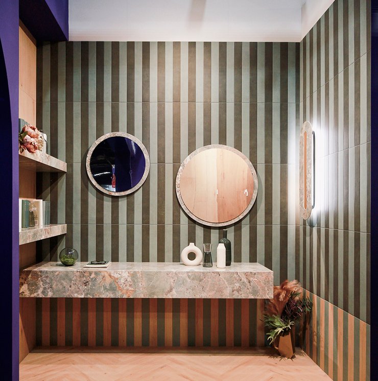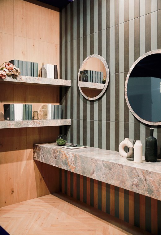 Cette orientation est déjà visible dans le thème 2024 autour duquel s'articule le développement des collections présentées lors de l'exposition Coverings 2024 : Joy of Nature, ou la redécouverte de la nature à travers la connexion entre l'intérieur et l'extérieur, avec des carreaux de sol et de mur qui mettent en valeur les effets des matériaux naturels.