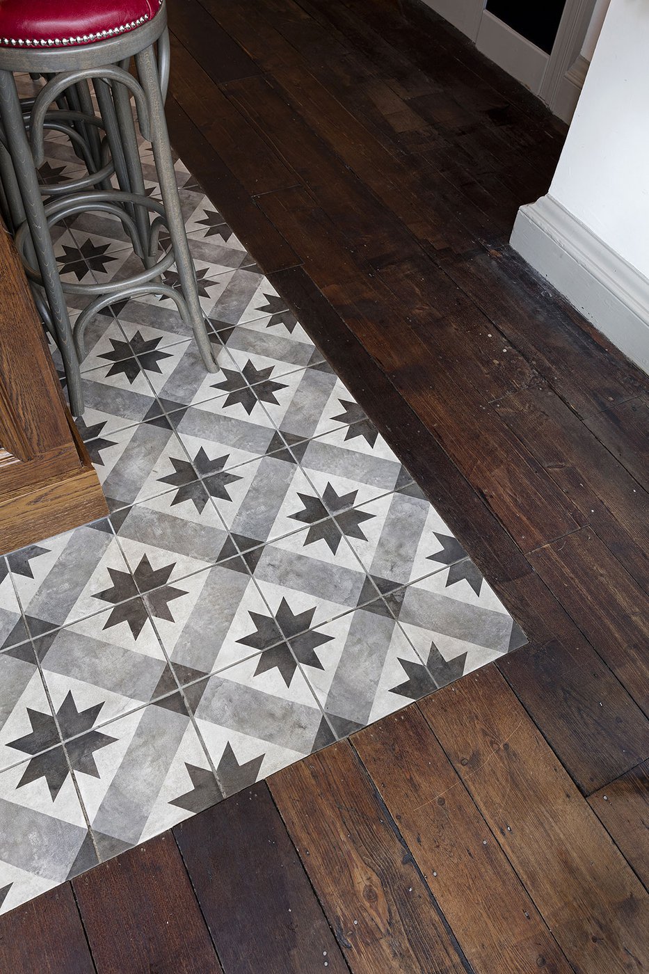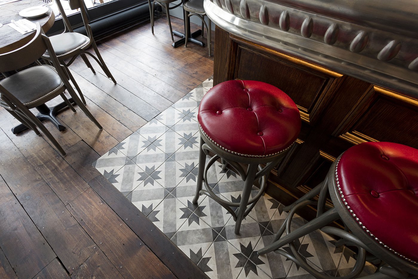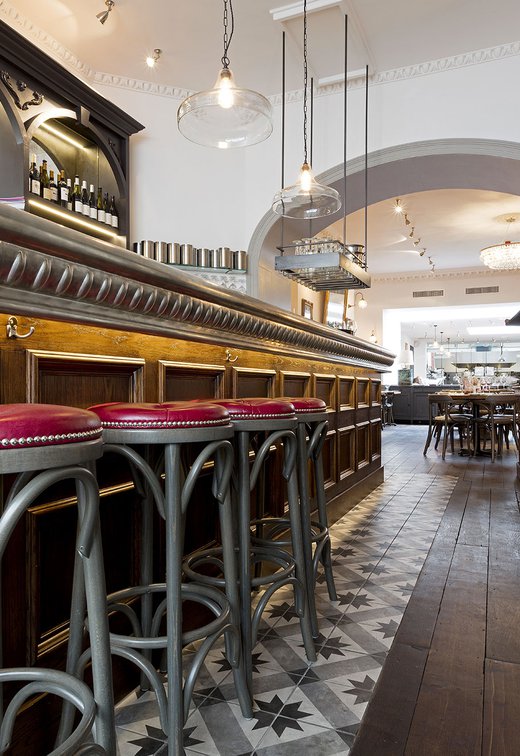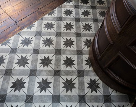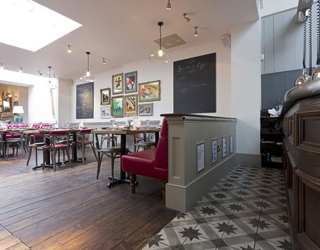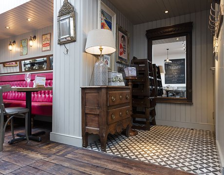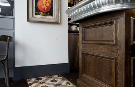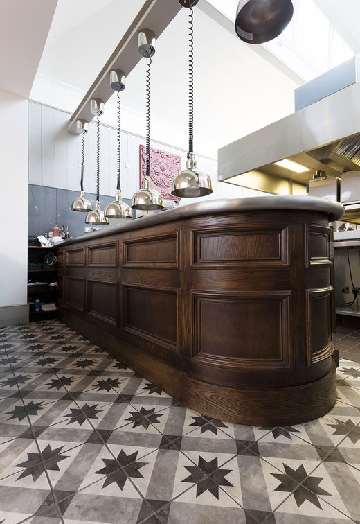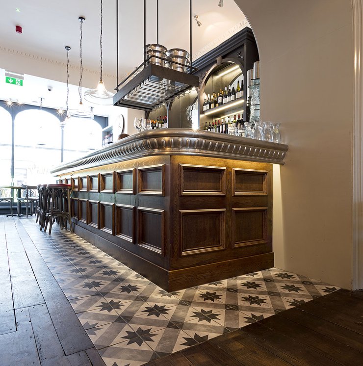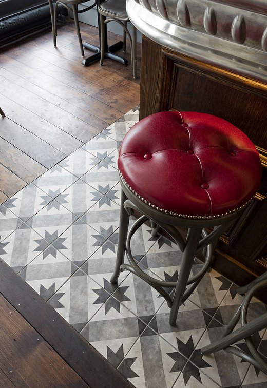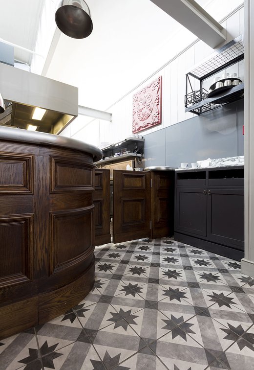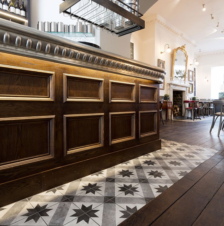 Une vieille maison géorgienne transformée en petit restaurant au goût rétro, un projet de restructuration ambitieux pour le Bistrot Pierre de Bath, nouveau local de la célèbre chaîne anglaise. Les carreaux de ciment de la collection Terra s’insèrent parfaitement dans cet édifice historique, en lui donnant une touche accueillante et recherchée. Si dans la salle principale et dans la zone comptoir on retrouve le décor Stella F dans un moderne croisement avec des bois naturels, dans les toilettes se distingue l’élégant fond Nero et le décor Astro F.