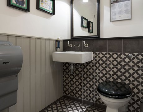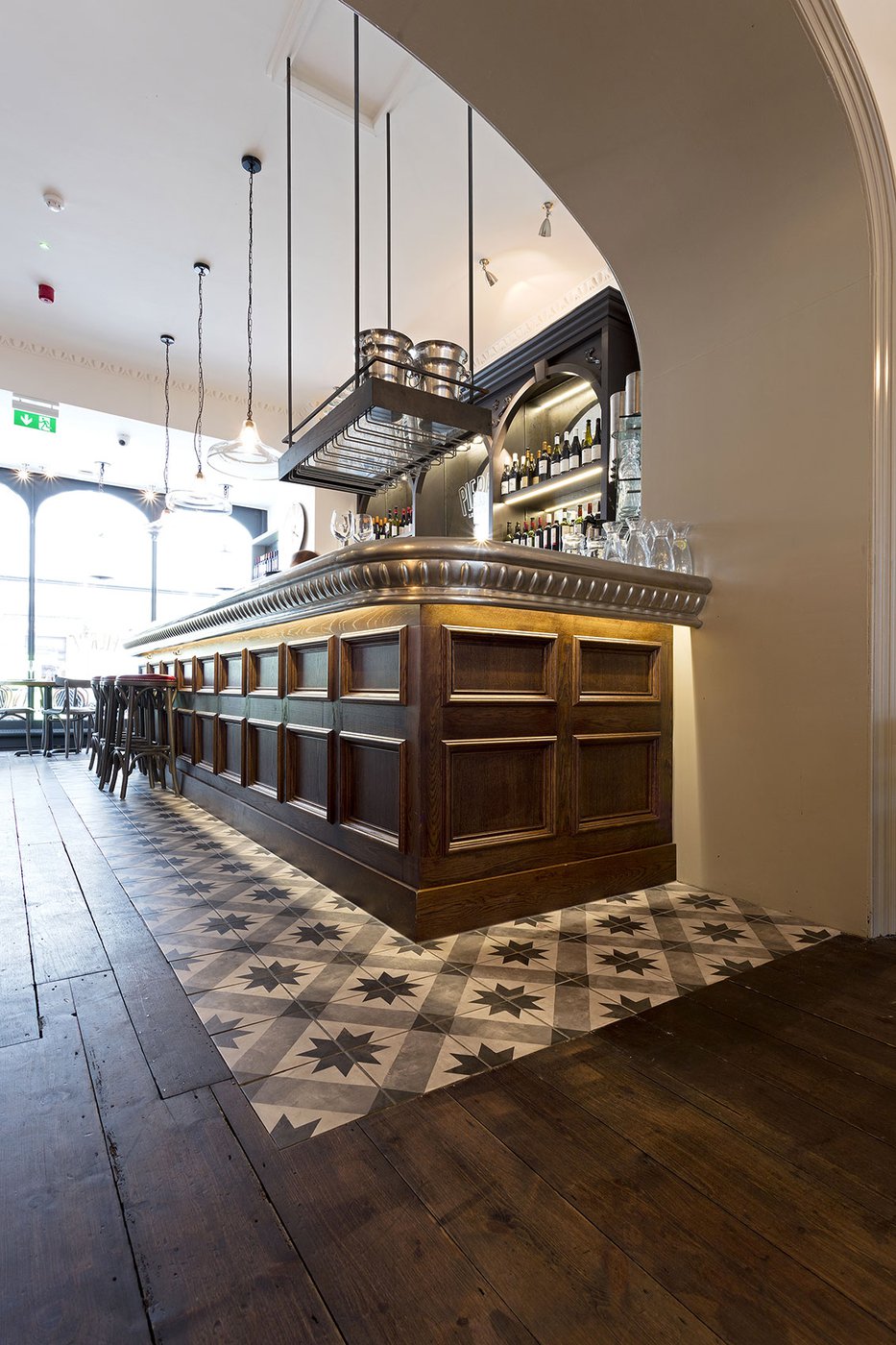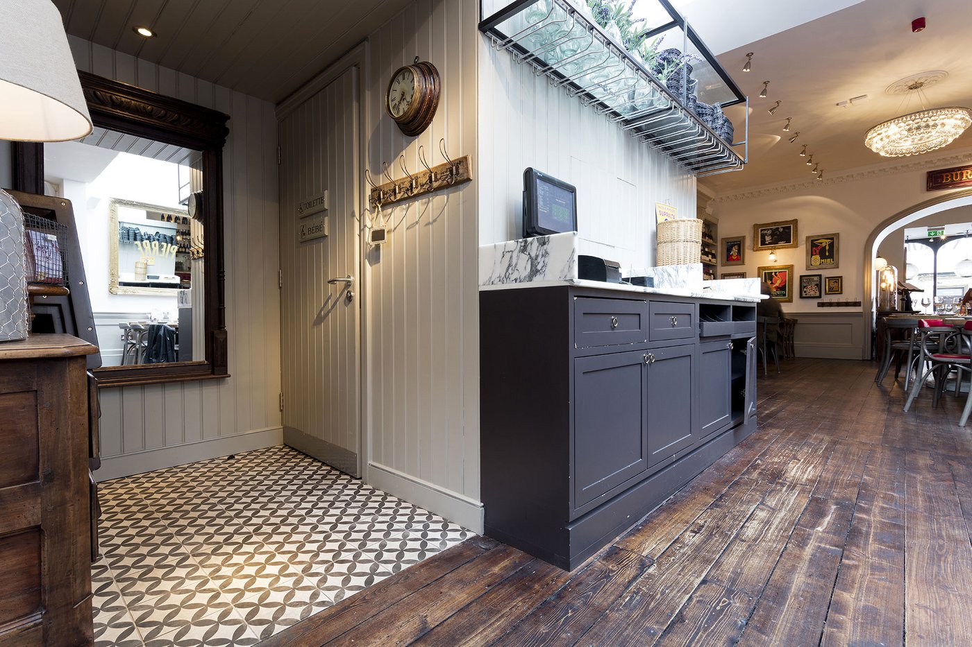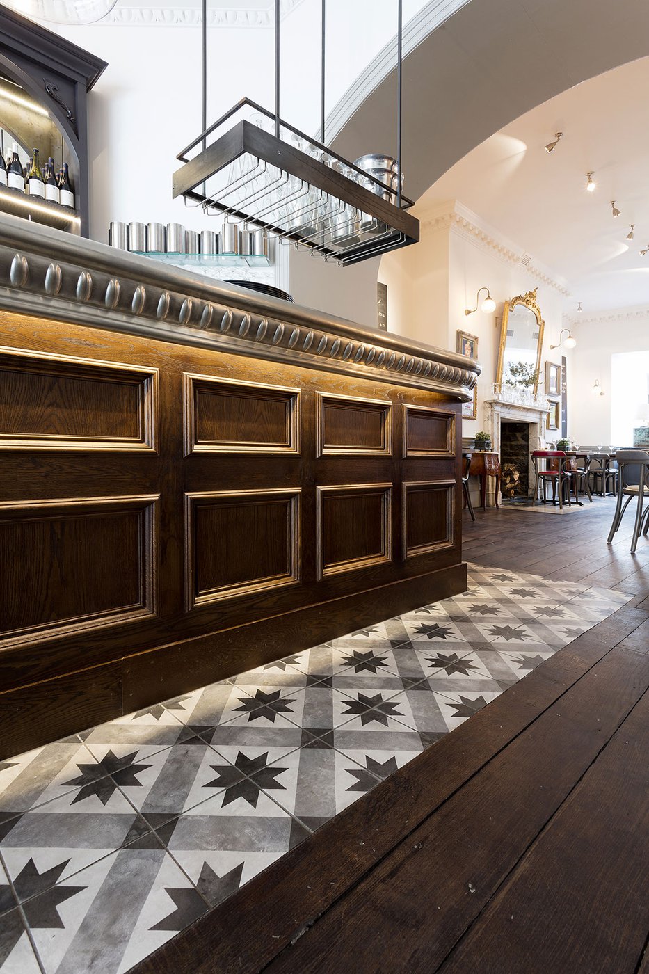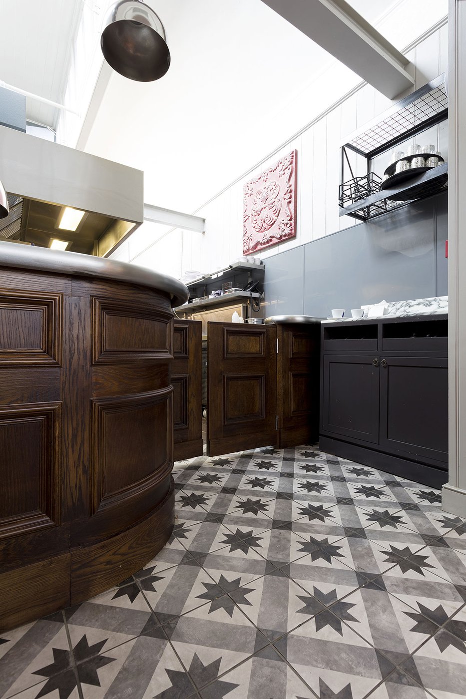 Une vieille maison géorgienne transformée en petit restaurant au goût rétro, un projet de restructuration ambitieux pour le Bistrot Pierre de Bath, nouveau local de la célèbre chaîne anglaise. Les carreaux de ciment de la collection Terra s’insèrent parfaitement dans cet édifice historique, en lui donnant une touche accueillante et recherchée. Si dans la salle principale et dans la zone comptoir on retrouve le décor Stella F dans un moderne croisement avec des bois naturels, dans les toilettes se distingue l’élégant fond Nero et le décor Astro F.