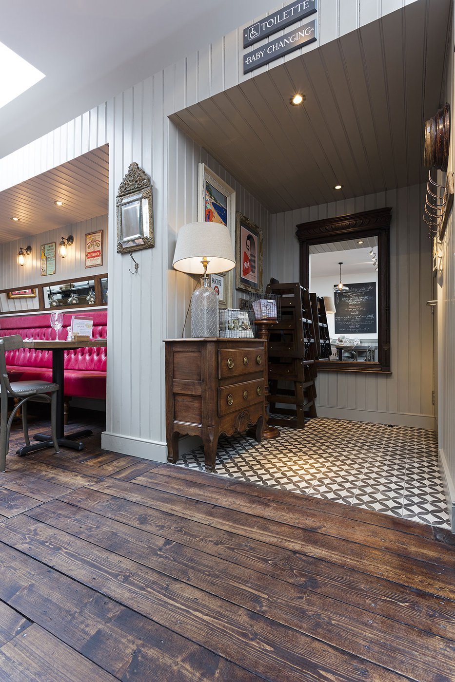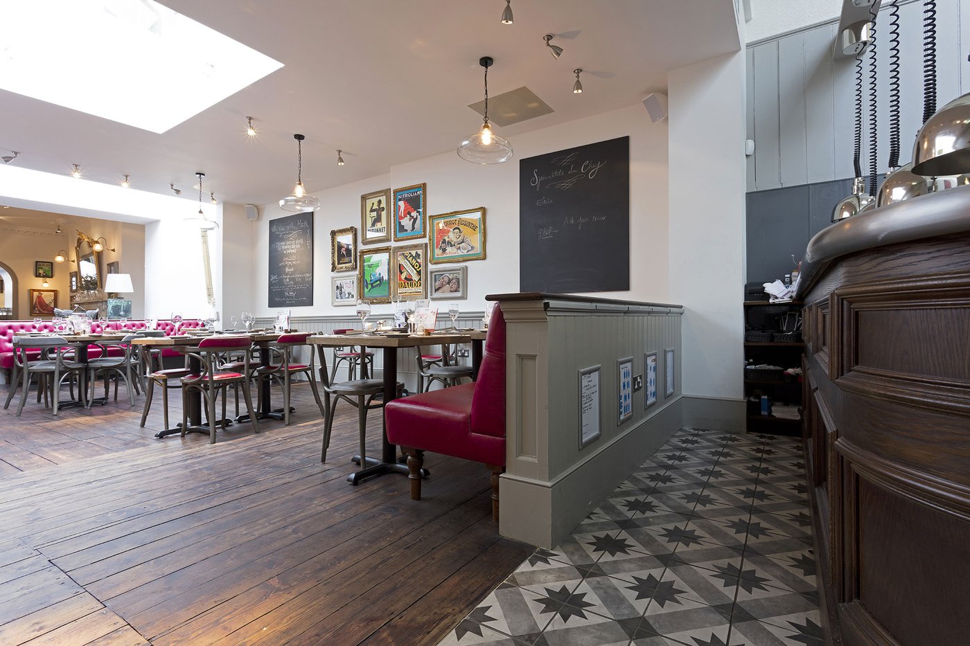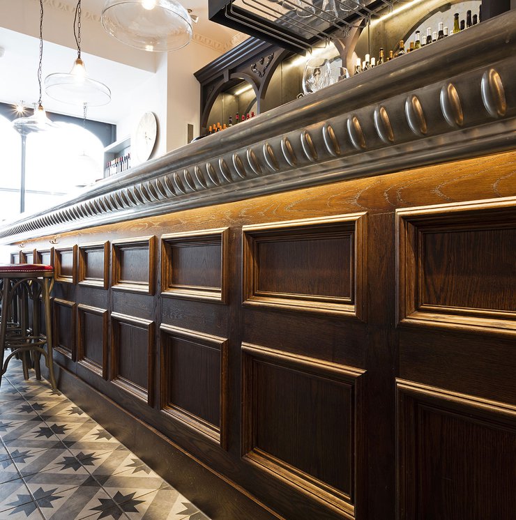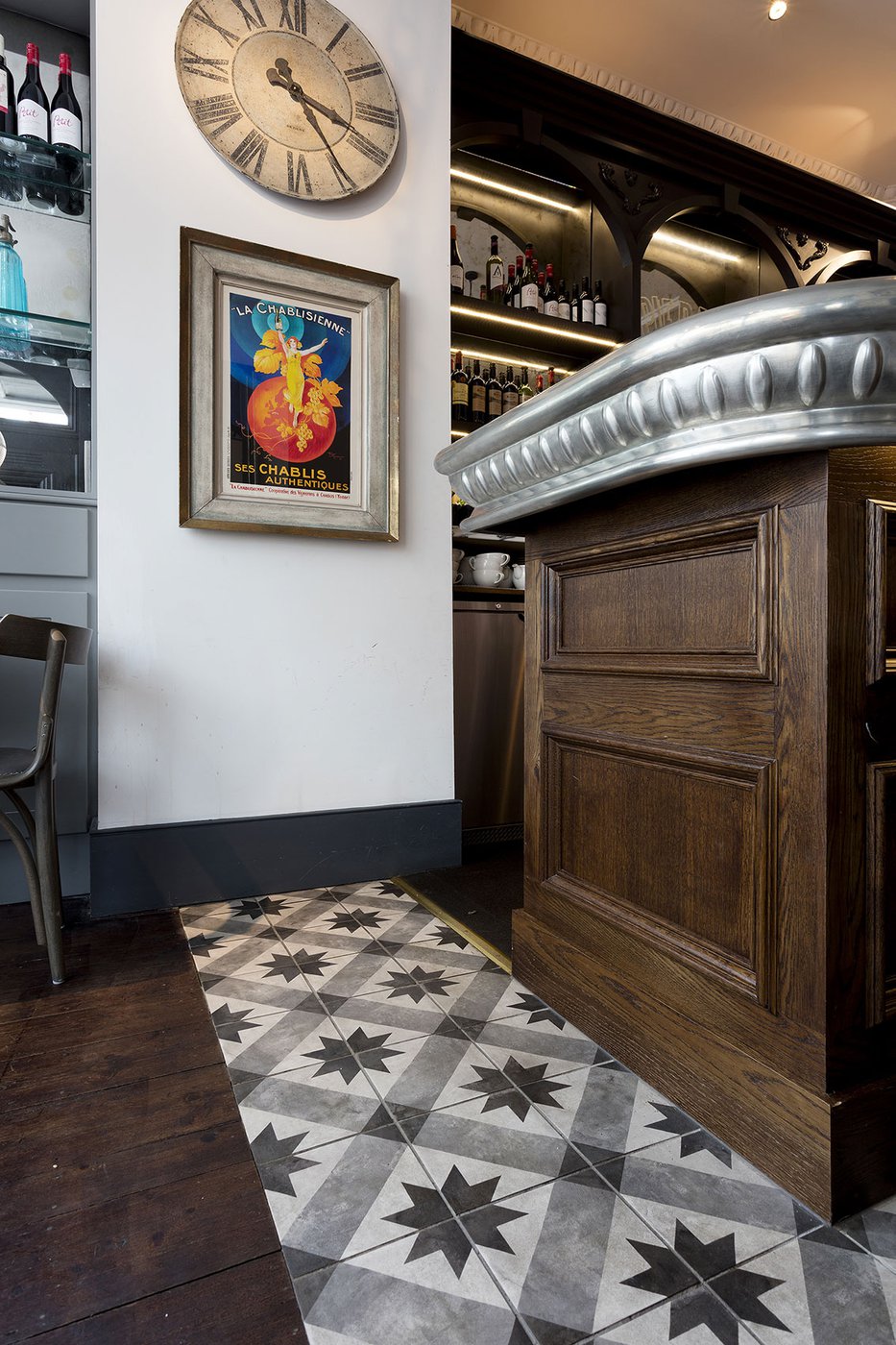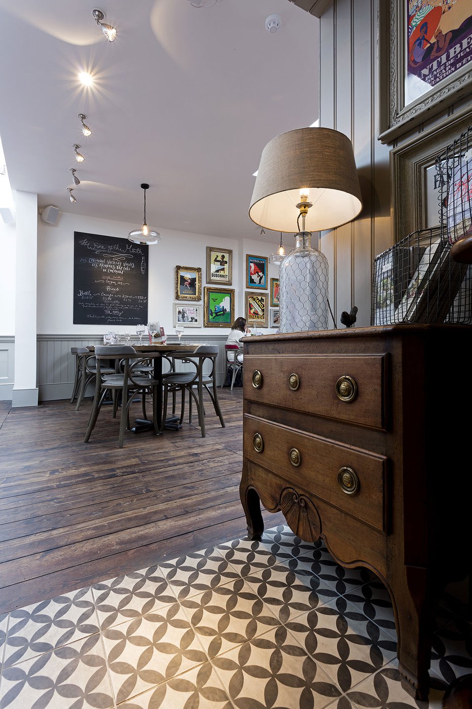 Une vieille maison géorgienne transformée en petit restaurant au goût rétro, un projet de restructuration ambitieux pour le Bistrot Pierre de Bath, nouveau local de la célèbre chaîne anglaise. Les carreaux de ciment de la collection Terra s’insèrent parfaitement dans cet édifice historique, en lui donnant une touche accueillante et recherchée. Si dans la salle principale et dans la zone comptoir on retrouve le décor Stella F dans un moderne croisement avec des bois naturels, dans les toilettes se distingue l’élégant fond Nero et le décor Astro F.