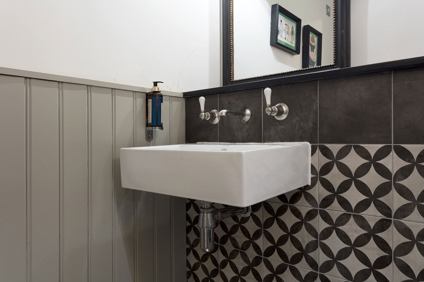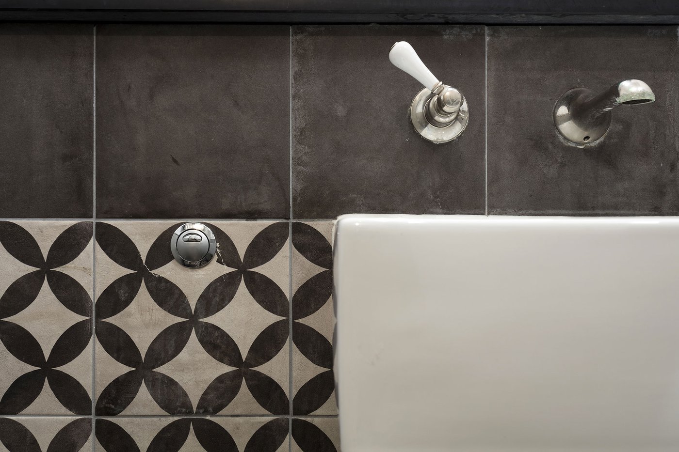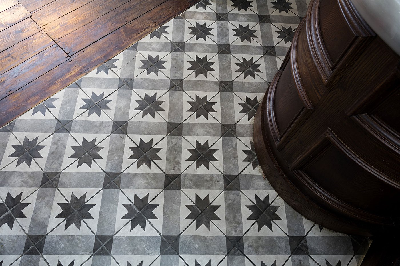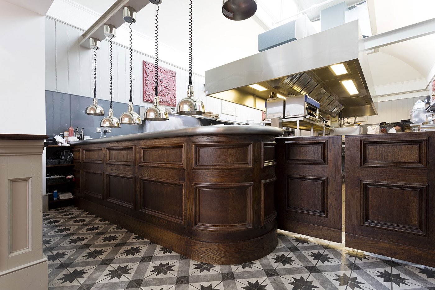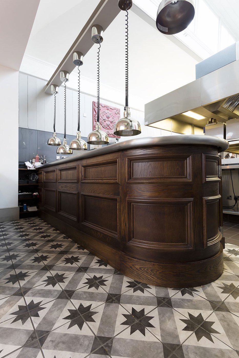Une vieille maison géorgienne transformée en petit restaurant au goût rétro, un projet de restructuration ambitieux pour le Bistrot Pierre de Bath, nouveau local de la célèbre chaîne anglaise. Les carreaux de ciment de la collection Terra s’insèrent parfaitement dans cet édifice historique, en lui donnant une touche accueillante et recherchée. Si dans la salle principale et dans la zone comptoir on retrouve le décor Stella F dans un moderne croisement avec des bois naturels, dans les toilettes se distingue l’élégant fond Nero et le décor Astro F.