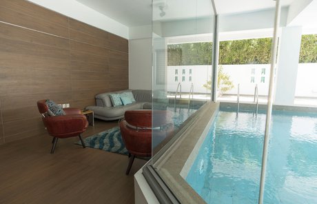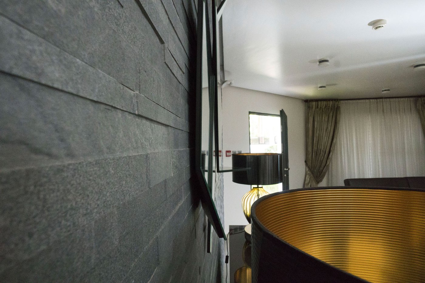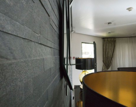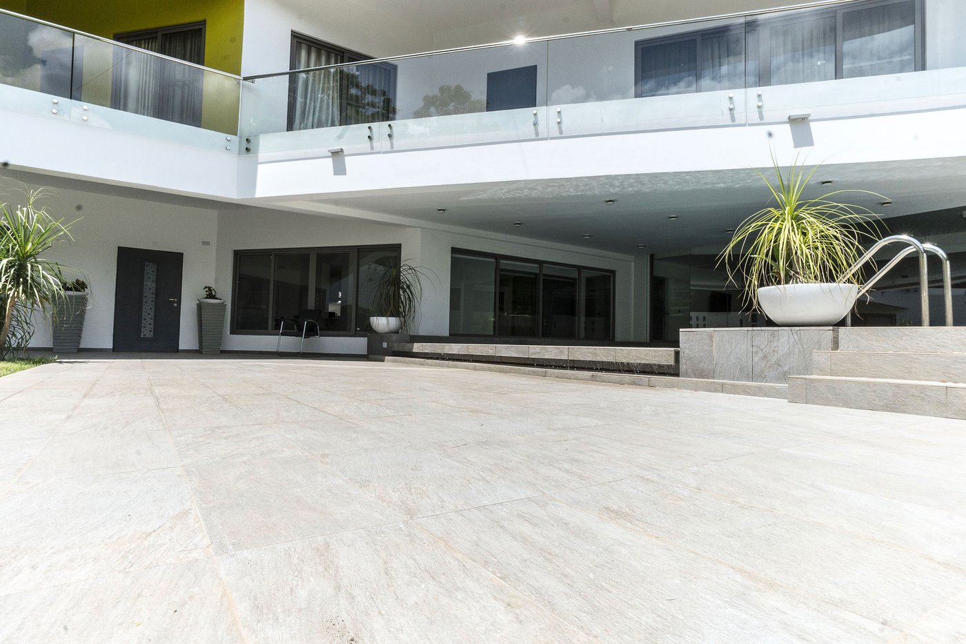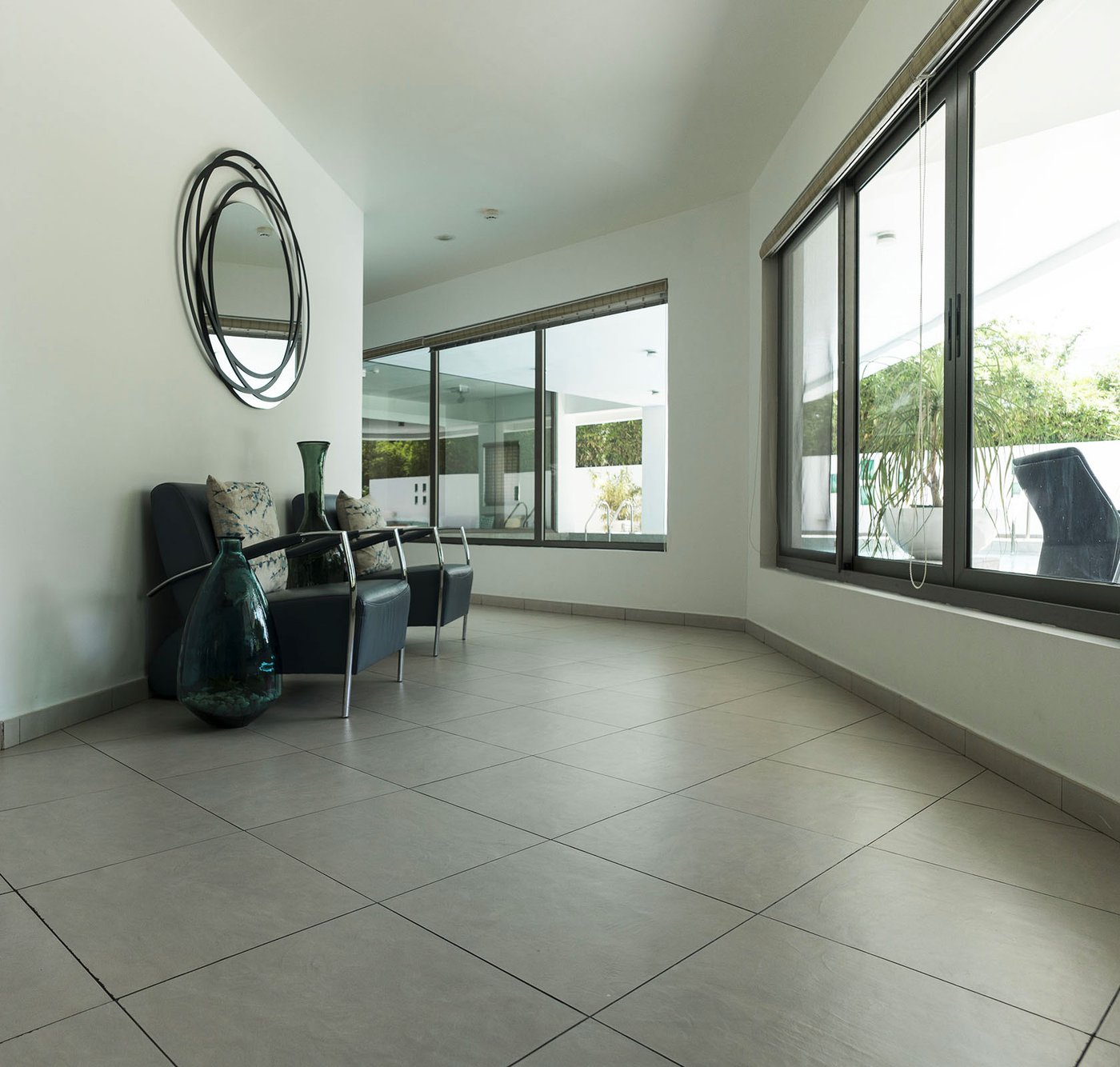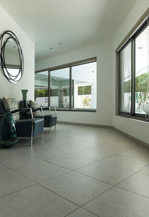 Pour enrichir cette luxueuse résidence privée, de nombreuses collections Marca Corona ont été utilisées, synthèse parfaite de style et de résistance. Cette merveilleuse habitation, articulée sur 2 étages et sur une surface totale de 1200 m², comprend aussi une vaste terrasse panoramique, une piscine ombragée à l’extérieur et un grand jardin. Les espaces intérieurs se caractérisent par différents aspects esthétiques, tous modernes et exclusifs : le salon présente aussi bien les surfaces effet pierre de Matrix que les sols imitation bois de Prestige. Tandis que le sol de la cuisine et du couloir a été recouvert avec Work effet ciment, la chambre principale a, quant à elle, une personnalité chic grâce aux marbres blancs de Deluxe. Pour revêtir le périmètre extérieur de la maison et de toute la piscine – son fond et son bord – ont en revanche été choisies les céramiques Stoneline, à l’élégance solaire. Dans la zone Outdoor et dans le jardin, le choix s’est porté sur Reaction Brown, une série au caractère encore plus authentique et décidé.