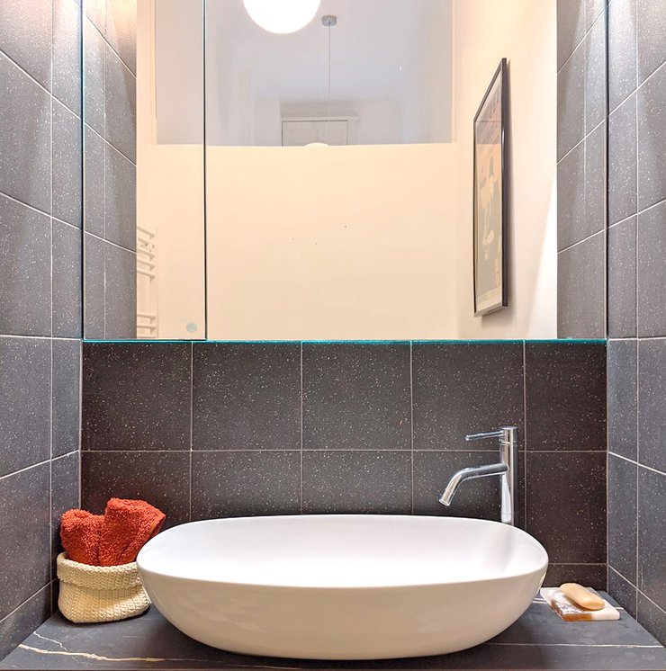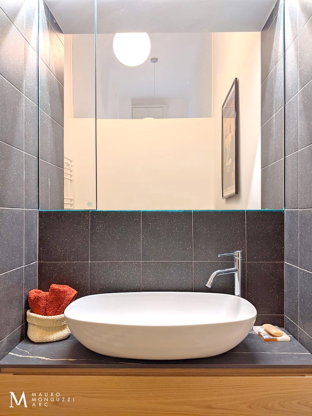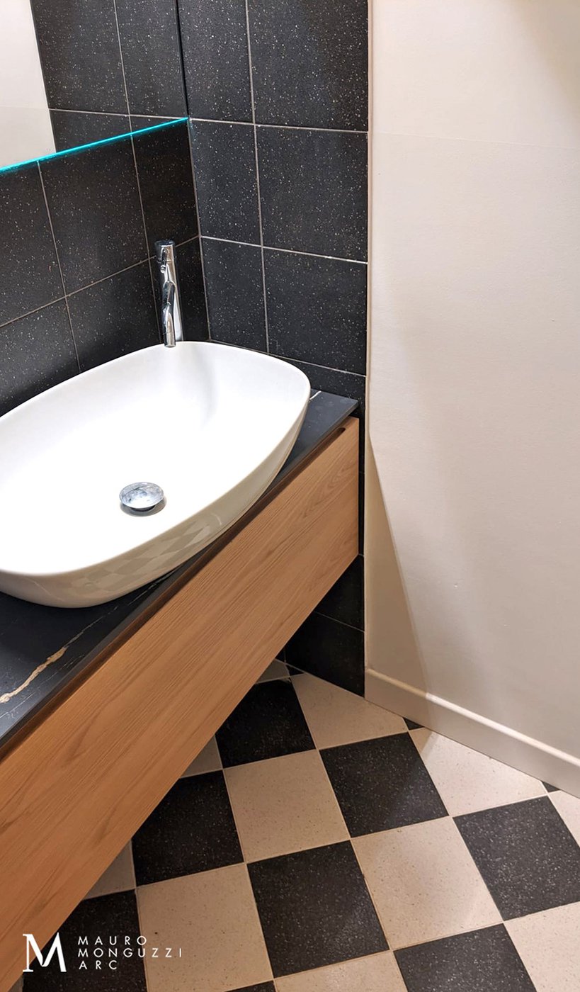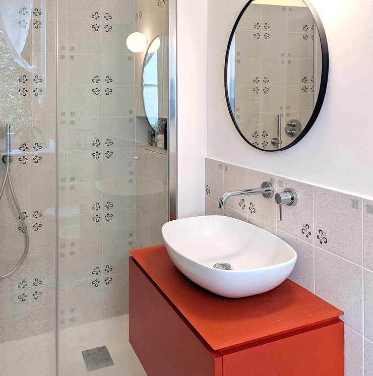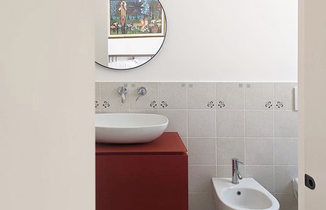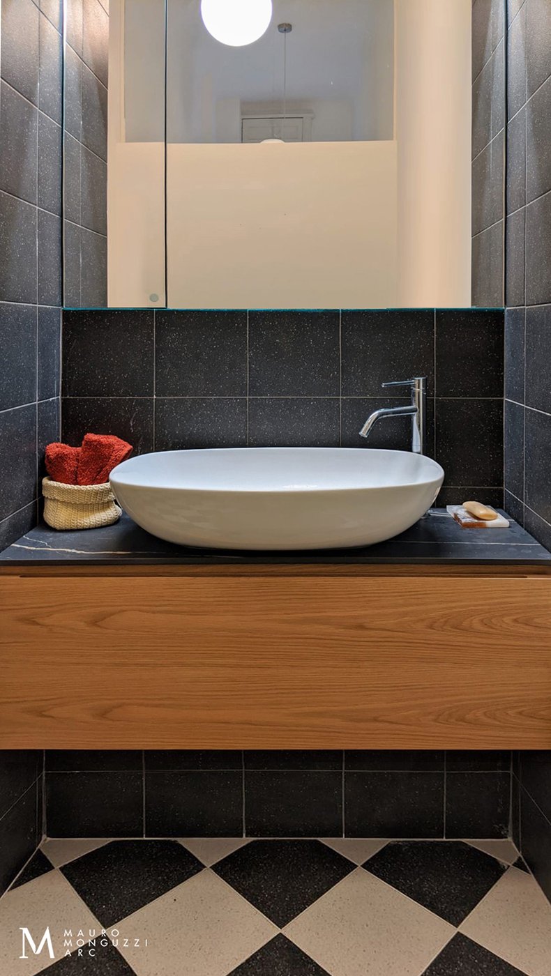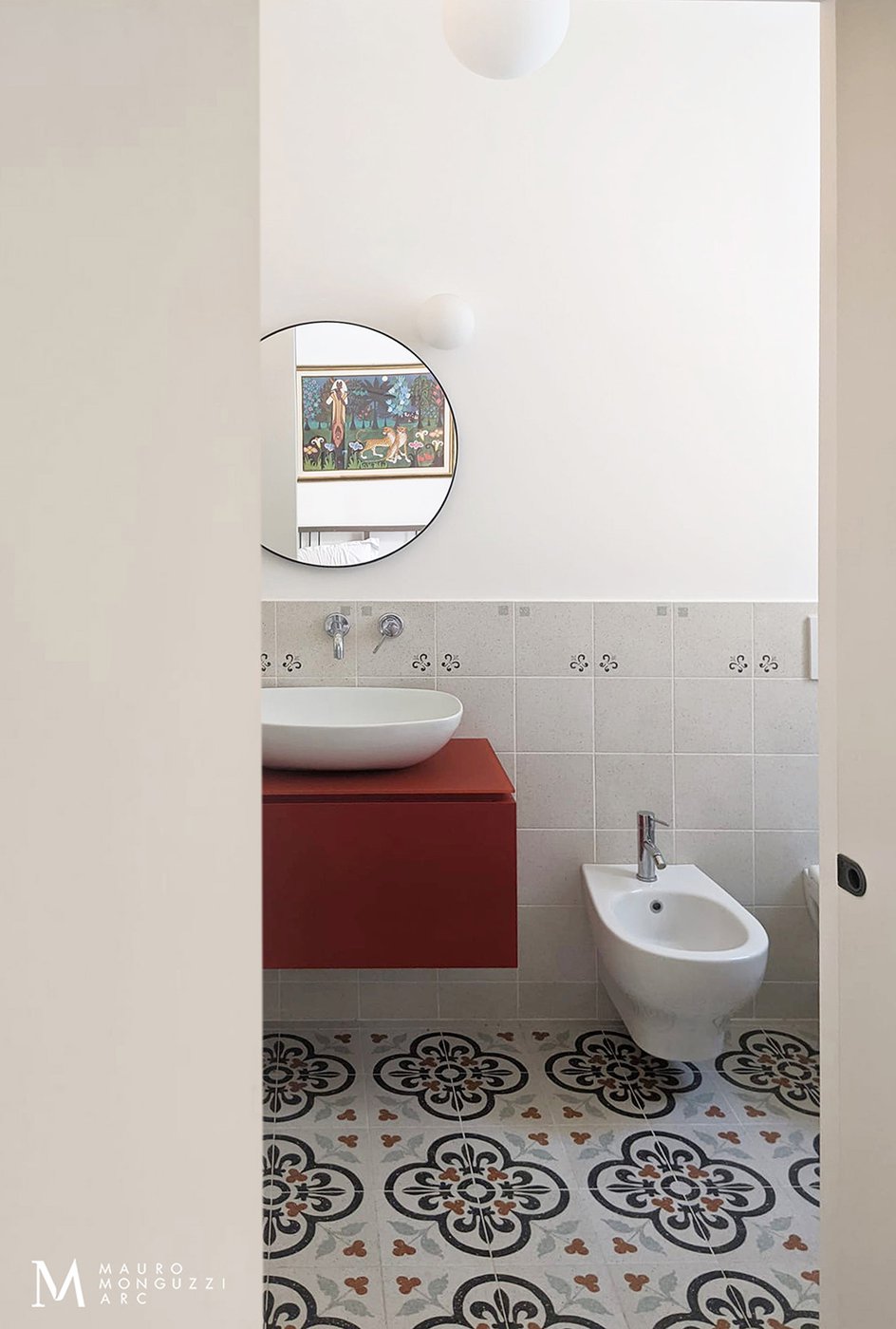 Un projet de rénovation résidentielle en équilibre entre tradition et tendance, entre conservation stylistique et fonctionnalité. Une intervention ambitieuse dans un appartement historique milanais, qui a conduit à la requalification des sols en granito de la zone jour et à la rénovation intégrale des deux salles de bain. Dans ces deux nouveaux espaces se retrouvent désormais les sols et revêtements effet terrazzo de Forme, le grès cérame Marca Corona capable de reproduire fidèlement les sols originaux. Proposés en différentes tonalités, variantes graphiques, et dans les deux finitions, matt et glossy, les céramiques Marca Corona donnent vie à un plaisant jeu décoratif et des atmosphères résolument rétro. Dans les salles de bains et dans toute la maison, le style vintage et les mobiliers historiques sont savamment mis en valeur par des accents de couleur et des détails design contemporains.