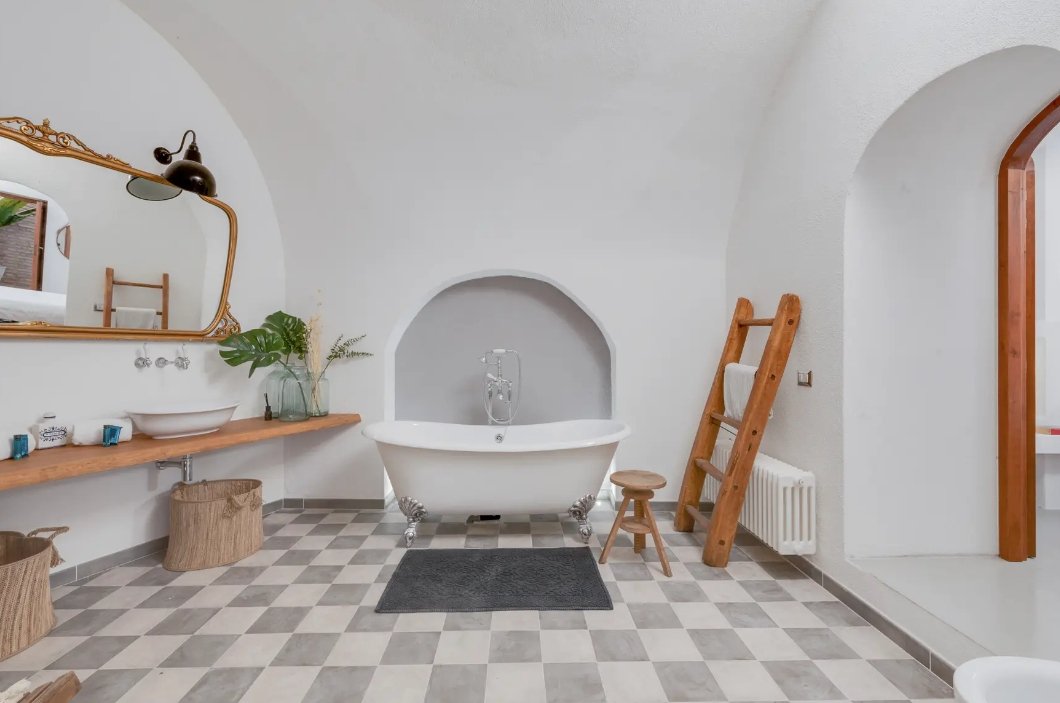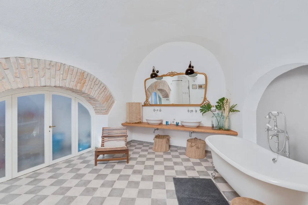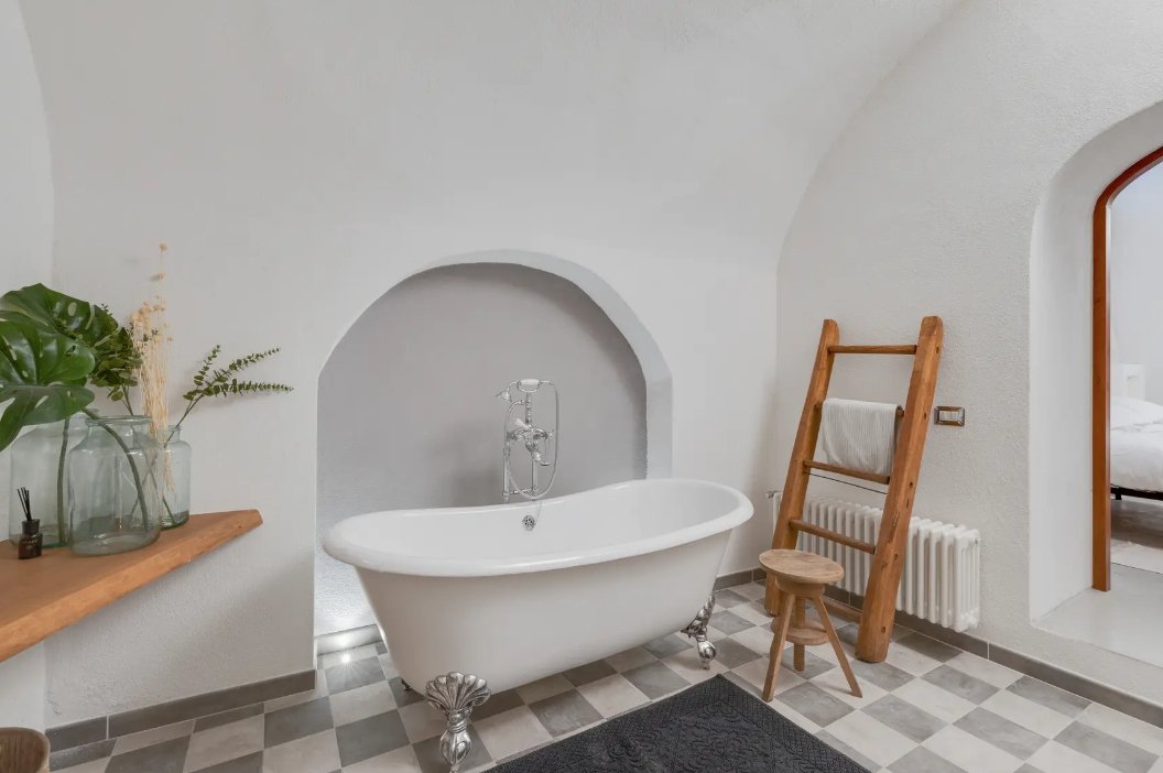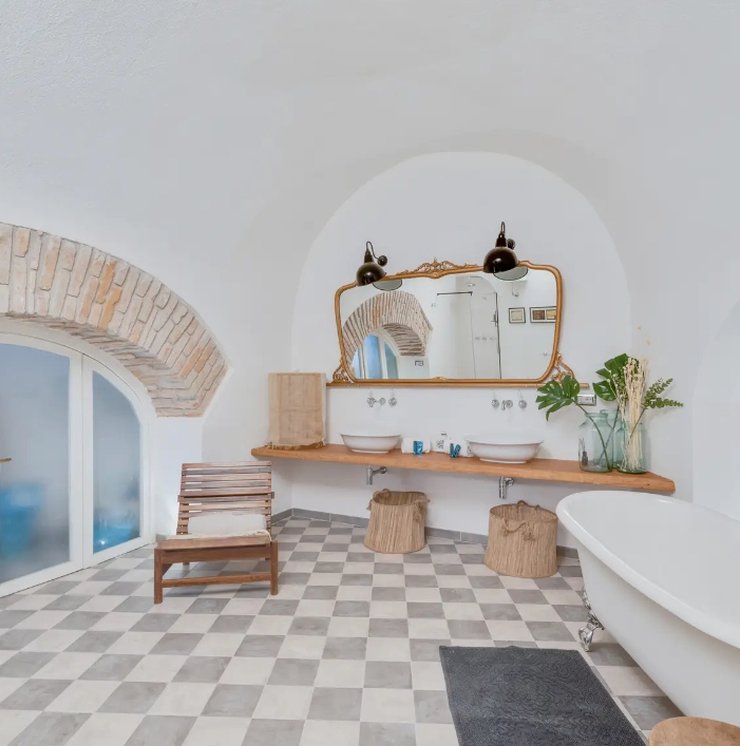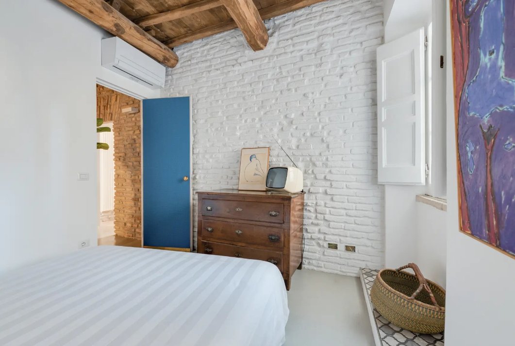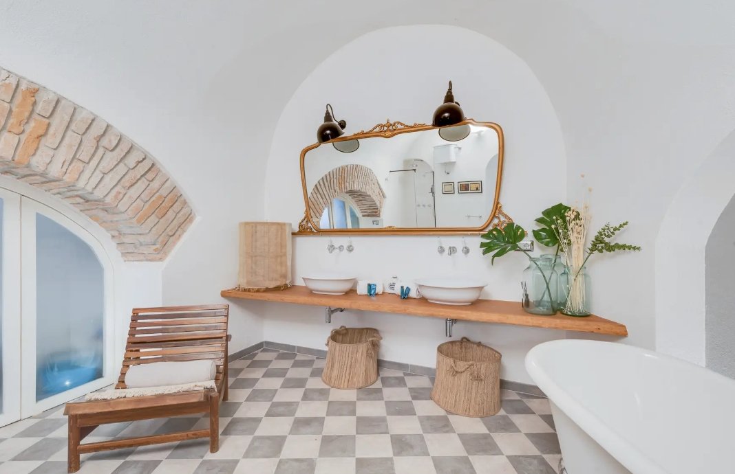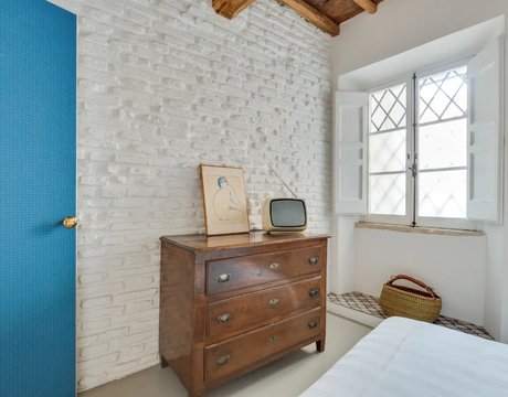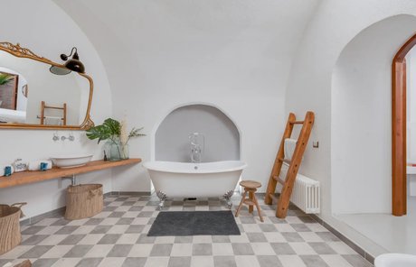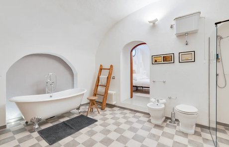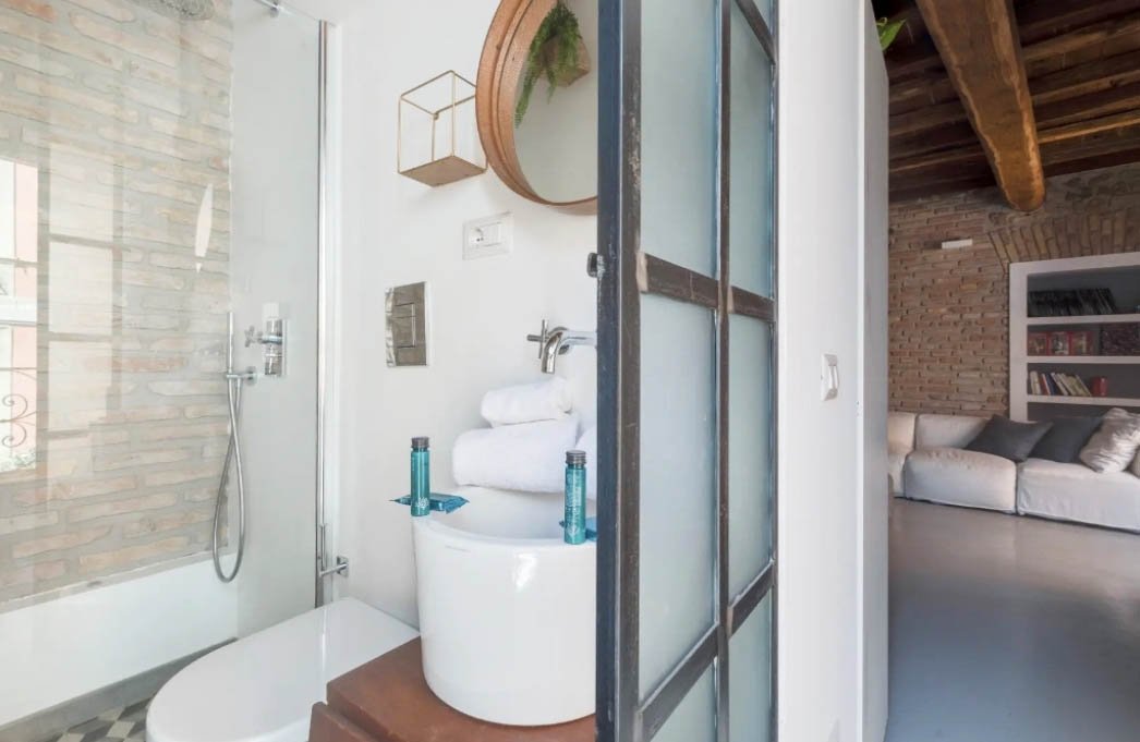 Dans les différentes chambres et salles de bains, le format classique 20x20 présente différents motifs décoratifs, choisis pour conférer un charme unique et atemporel à chacun des espaces, en parfaite harmonie avec tous les autres. Les géométries et les tons rayés de Terra exaltent l’élégance des commodes vintage, l’authenticité des murs en pierres apparentes et la beauté des poutrelles à vue.