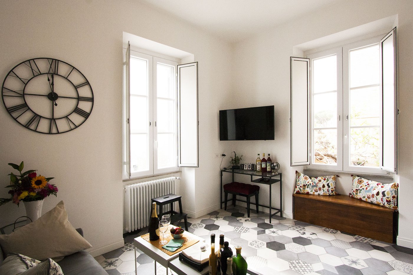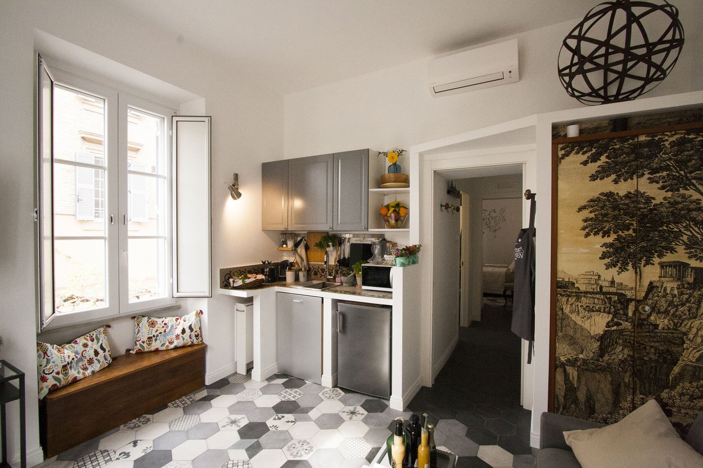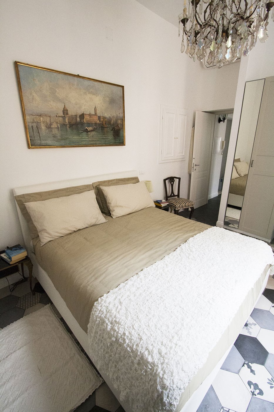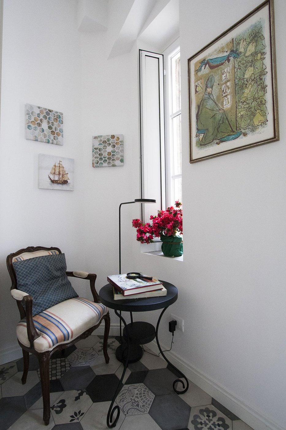 Un appartement de style « Bohème » à deux pas des Musées du Vatican à Rome. Les carreaux de ciment Terra sont idéals pour apporter à chaque pièce une touche de fantaisie et d’élégance. Dans l’espace jour et dans la chambre à coucher, l’original format hexagonal du Mix Decori F donne vie à un irrésistible jeu de motifs et de nuances délicatement poudreuses. Pour le sol de salle de bain, un raffiné tapis monochrome a été réalisé, composé de Terra Antracite 25x21,6.