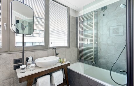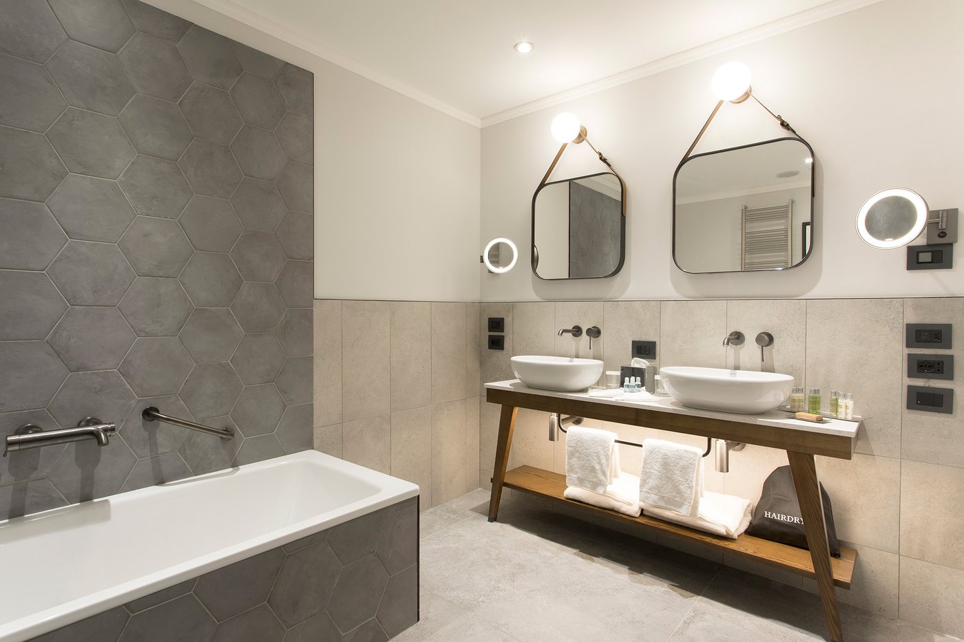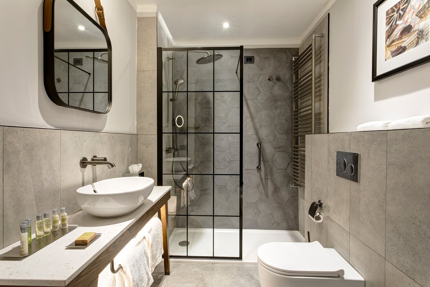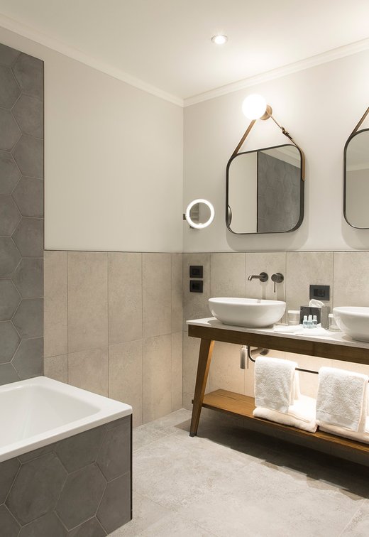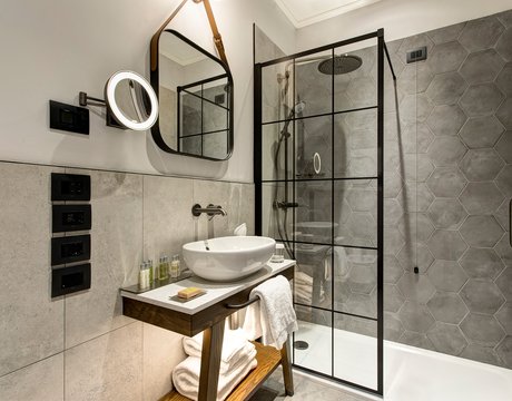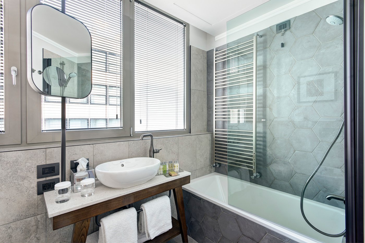 Séjourner au DoubleTree by Hilton, au cœur du Rione Monti, n’est pas seulement une expérience, mais une véritable immersion dans l’essence authentique de Rome. L’hôtel est conçu pour offrir une expérience de séjour contemporaine, avec un design totalement italien qui célèbre les merveilles historiques de la ville tout en adoptant une vision future faite de durabilité et de verdure. Dès leur arrivée à la réception, les clients sont accueillis dans un environnement chaleureux et accueillant, caractérisé par un design élégant et lumineux. Des éléments verts, tels que des plantes et des détails naturels, sont intelligemment intégrés dans l’ameublement, créant une atmosphère confortable qui invite à la détente. Dans le restaurant de l’hôtel, on a choisi de jouer avec les motifs de la collection Forme pour créer des effets originaux de tapis et des motifs décoratifs qui correspondent au style à la fois informel et chic du restaurant. Dans les chambres privées, la présence d’éléments verts apporte non seulement une touche de fraîcheur, mais contribue également à créer une ambiance sereine et ressourçante. L’utilisation habile de la lumière naturelle et d’ameublements accueillants complète l’expérience, transformant chaque chambre en un havre de confort et de style. Une attention particulière a été portée aux salles de bains, où le choix des Cementine hexagonales Terra de Marca Corona s’intègre parfaitement à l’atmosphère rétro de l’hôtel. Le coin douche, orné de ces carreaux, devient un point de convergence de l’élégance et de l’originalité. En plus de l’esthétique, les Cementine hexagonales en grès cérame Terra garantissent de hautes performances techniques grâce à leurs propriétés anti-moisissure et anti-dérapantes. Ces caractéristiques font de ces carreaux le choix idéal pour tous les environnements soumis à des écarts de température, au piétinement fréquent et à l’usure. En résumé, le DoubleTree by Hilton dans le Rione Monti offre une expérience de séjour qui va au-delà d’une simple nuitée, la rendant inoubliable pour chaque client.