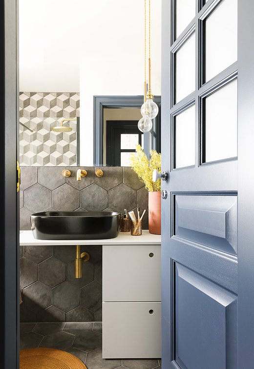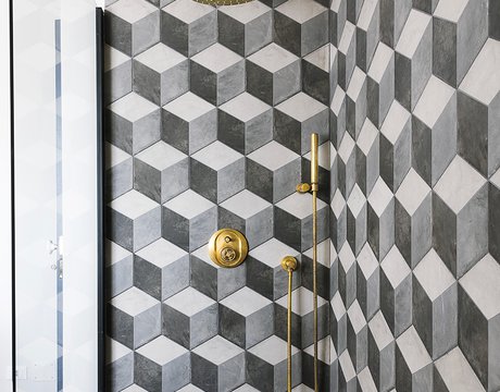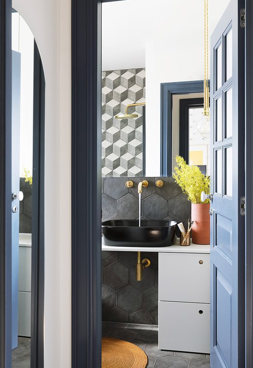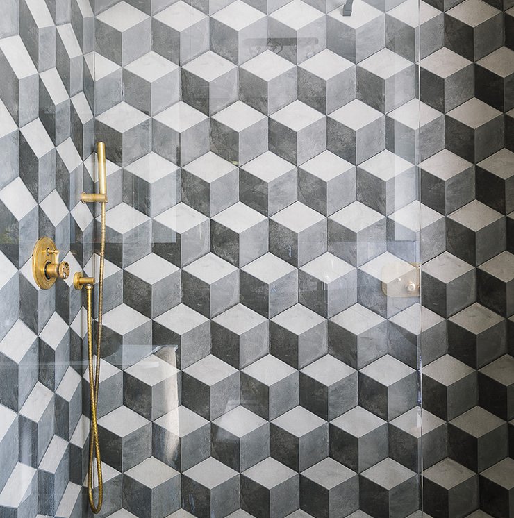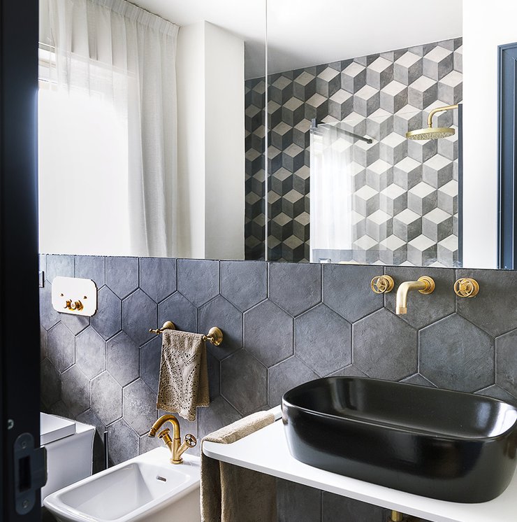 Geometrie di colore (Géométries de couleur) est le nom choisi par le studio Vesper Design pour ce projet résidentiel en plein cœur de Catane. Une intervention de restructuration à l’âme design, apparue dans le dernier numéro de Casa Facile, qui mise tout sur les décorations de tendance, les accents de couleur et l’attention portée au détail. Le résultat est une habitation joyeuse et captivante qui interpelle ses hôtes dans chaque espace. Même la salle de bains se soumet au thème de la couleur en le réinterprétant, à travers des tonalités foncées et rayées et l’originalité du format hexagonal : les cementine Terra puisent dans toute la palette de gris en dessinant des jeux tridimensionnels fortement décoratifs. Ces sols et revêtements en grès cérame Marca Corona, proposés dans le fond Antracite et dans la version moderne Rombo, parviennent à allier l’authenticité de l’effet terre cuite-ciment au raffinement des nuances et à l’originalité des graphismes : le choix idéal pour des espaces de design qui ne souhaitent pas passer inaperçus.