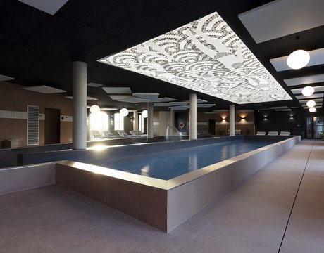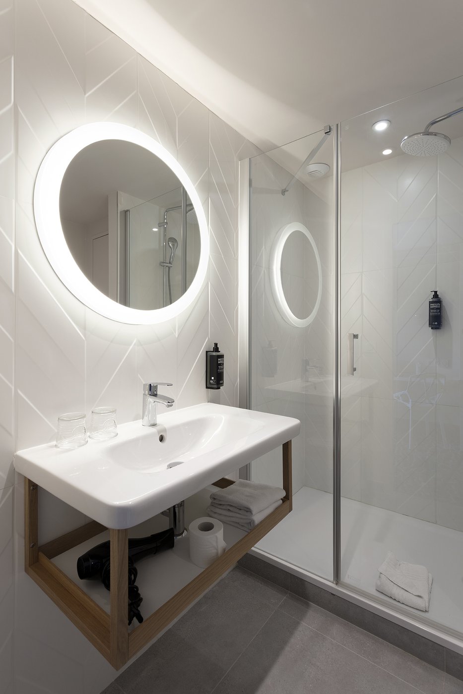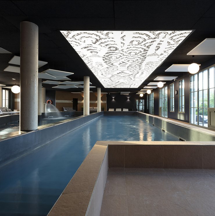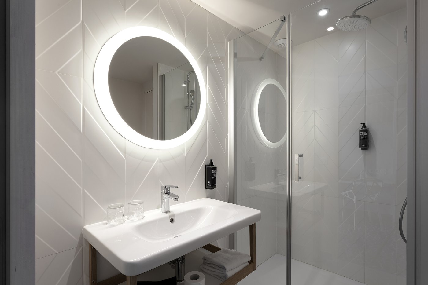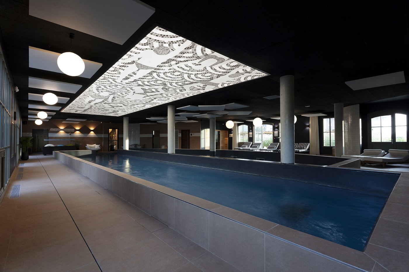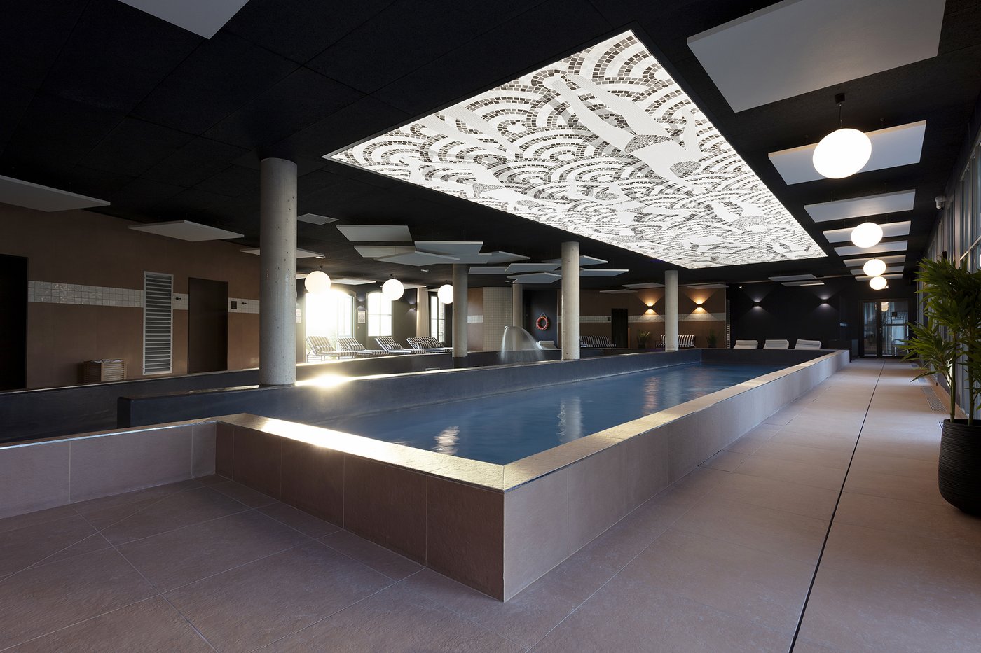 Pour rénover l’espace bien-être commun aux trois établissements et pour les chambres de chaque hôtel, le studio Roque Intérieurs a choisi le prestige et la qualité des sols et de revêtements en grès cérame signés Marca Corona. Voyons en détail lesquels ! Dans le grand spa doté de piscine et solarium, nous trouvons les précieuses surfaces Overclay installées au sol et en revêtement dans différents formats. Parfaites pour réchauffer l’environnement et le rendre encore plus chic et exclusif, elles garantissent une résistance à l’humidité et une sécurité maximale grâce à leurs propriétés antidérapantes. Poursuivant la découverte de chaque établissement, on peut remarquer l’utilisation de différentes collections céramiques Marca Corona pour décorer les salles de bains présentes dans les chambres et suites : les dalles raffinées effet marbre Foyer, proposées dans la variante Joy, offrent un effet lumineux et glamour aux salles de bains de l’hôtel Tribe : la collection éclectique et très colorée de revêtements Victoria mise sur le motif tridimensionnel Art pour créer un agréable effet relief le long des murs, tandis que les surfaces matérielles Phase et les revêtements originaux 4D ornent les murs et sols du dernier hôtel de complexe hôtelier, l’Ibis Style.