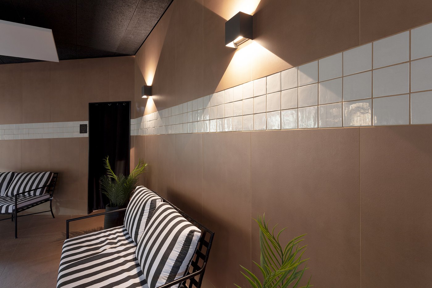 Les surfaces en grès cérame Marca Corona utilisées dans cet ambitieux projet créent un mix&match harmonieux de styles, effets et formats capables de satisfaire l’esthétique, la fonctionnalité et les performances techniques, notamment la résistance aux sollicitations, aux impacts, au piétinement et aux écarts de température, éléments très importants dans les projets destinés au monde de l’hôtellerie.