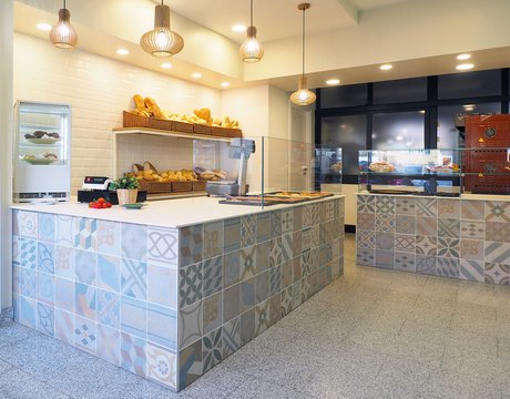 Pour couvrir les comptoirs de cette nouvelle boulangerie turinoise, le choix s’est porté sur la collection Chalk, en mesure d’associer à l’esthétique élégante l’hygiène maximale et la facilité de nettoyage, deux exigences indispensables pour une activité de restauration commerciale. Les couleurs pastel et les décors originaux des carreaux ciment Marca Corona confèrent au lieu une atmosphère fraîche et informelle, parfaite pour un en-cas.