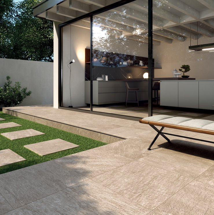 L'effetto pietra delle piastrelle Stoneline può inserirsi in molteplici contesti architettonici, infondendo una naturalezza intensa e affascinanti cromatismi materici. Grazie alle sue caratteristiche di inassorbenza e resistenza al calpestio, Stoneline trova applicazione anche nei contesti commerciali a passaggio intenso o negli ambienti che richiedono facilità di pulizia e massima igiene.