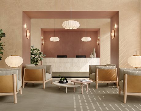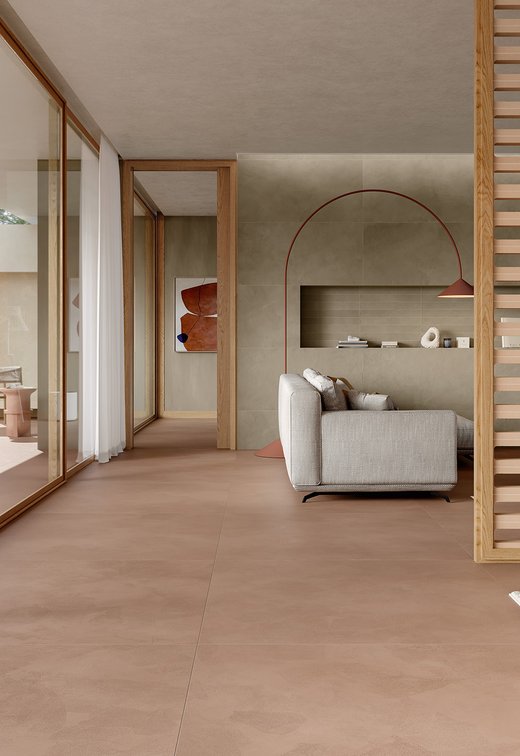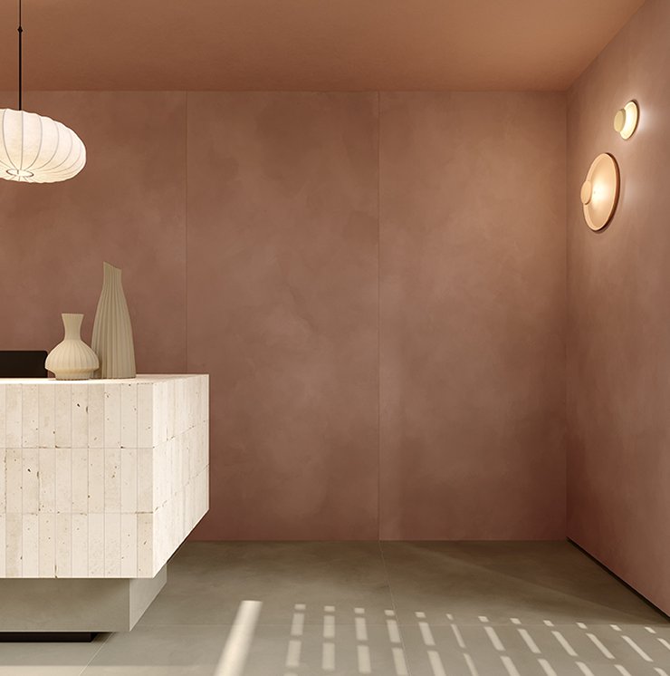 Calcecreta di Marca Corona celebra la naturale imperfezione della materia, ispirandosi alla pittura a calce e agli avvolgenti toni della terracotta. Versatile e ricca di suggestioni, la collezione si distingue per la sua capacità di trasformare le superfici in narrazioni visive e tattili, grazie ai delicati effetti spatolati e alle tracce decorative in bassorilievo.