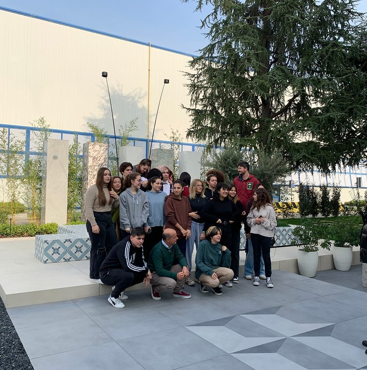 Interpretando alla lettera la proposta di Confindustria, l’azienda di Sassuolo ha ospitato due classi del Liceo artistico Adolfo Venturi di Modena offrendo loro l’opportunità di svolgere un’esperienza formativa e artistica unica con l’artista Giuseppe Stampone.