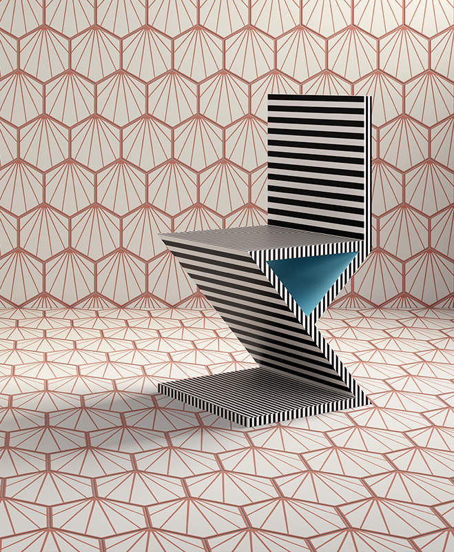 Negli anni ’80 le influenze optical si affacciano nuovamente sulla scena con lo stile Memphis, la corrente di Design radicale che ha saputo rimettere in discussione l’estetica minimalista del decennio precedente e provocare i salotti milanesi più conformisti con la propria re-interpretazione, provocatoria e kitsch, dell’art deco e della Pop Art.