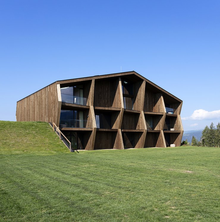 Per la riconversione di un antico maso altoatesino in struttura ricettiva di lusso, lo Studio Noa* ha realizzato un progetto infrastrutturale ambizioso, creando un complesso imponente ma rispettoso del paesaggio circostante, Aeon Hotel.