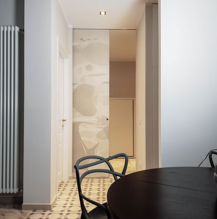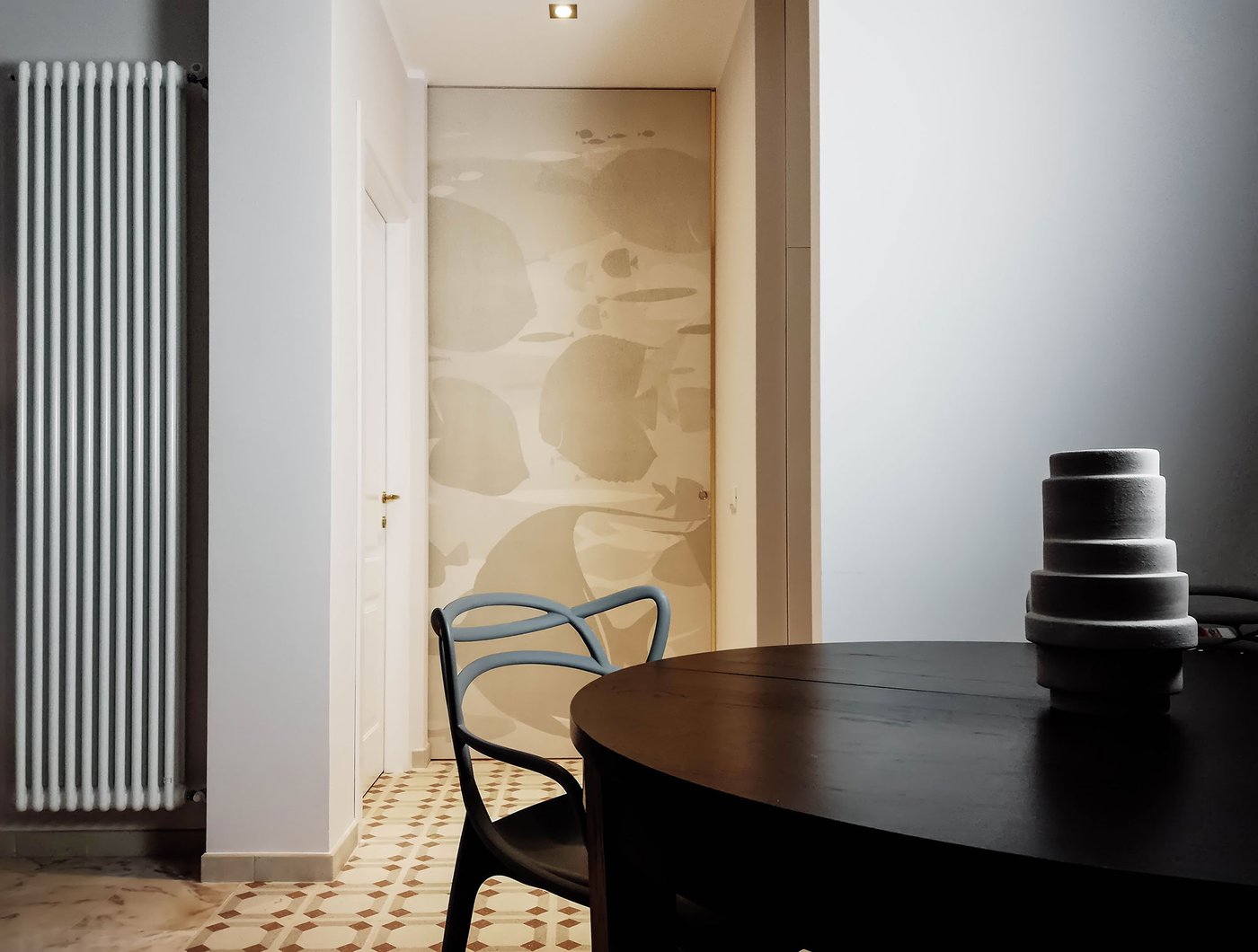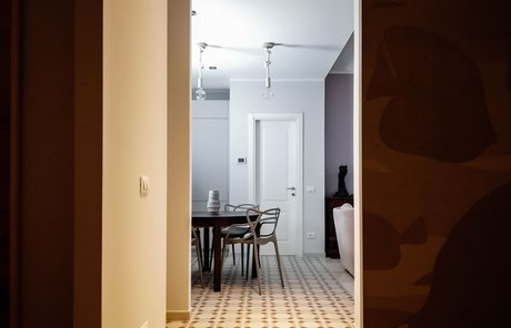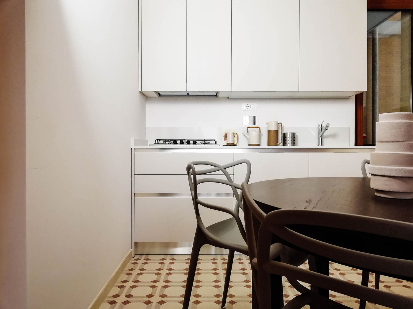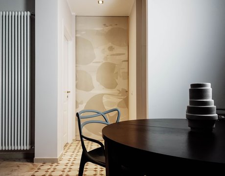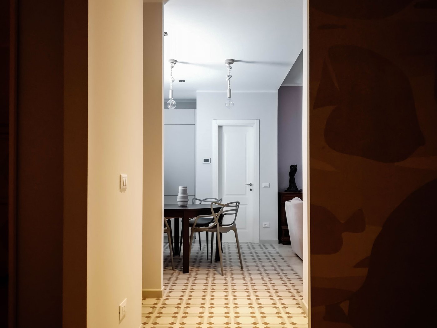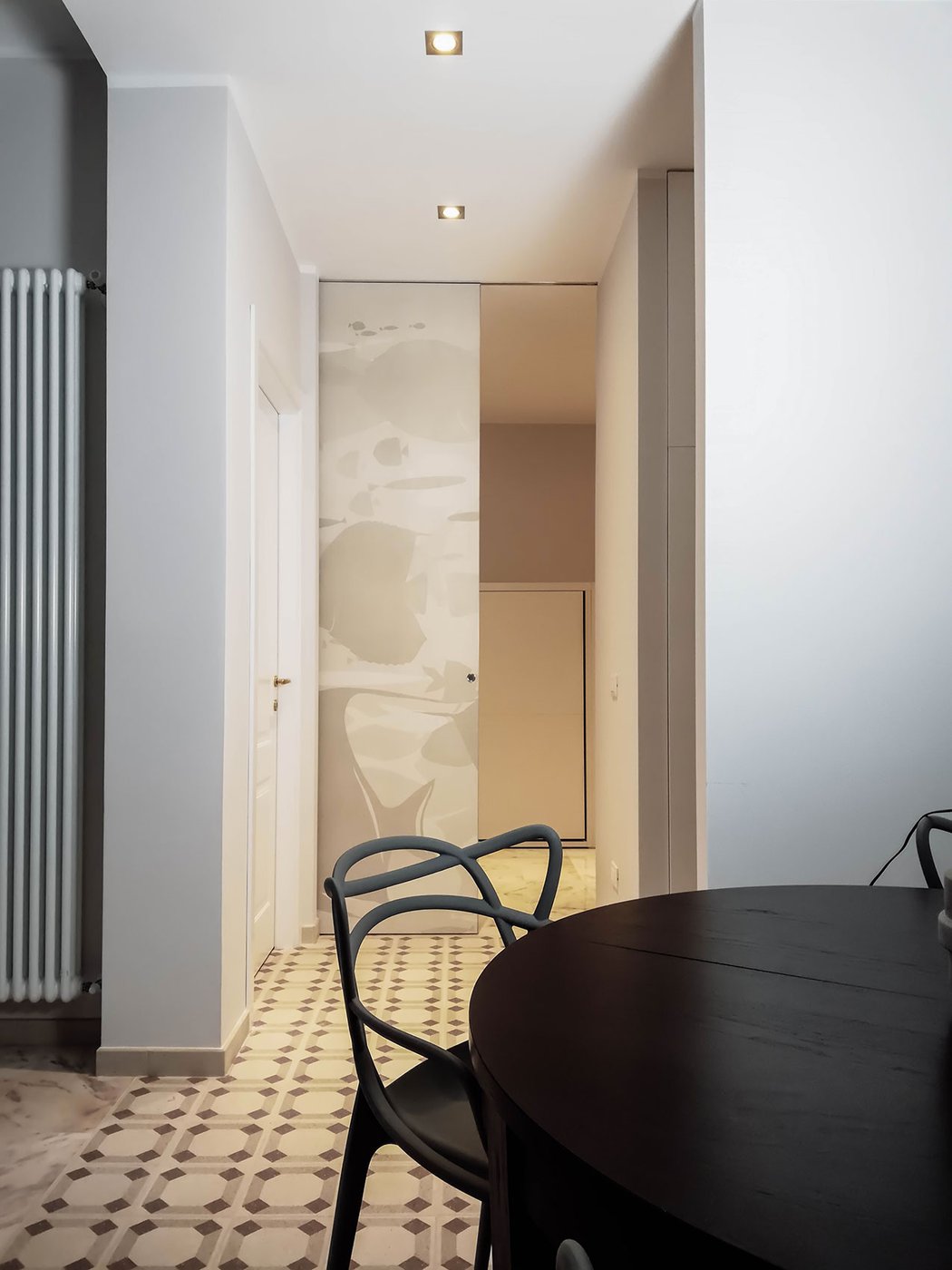 Per un appartamento ristrutturato di Sanremo è stata scelta Forme, la serie 1741 dal gusto più mediterraneo e autentico. I pavimenti con piastrelle in piccolo formato effetto graniglia si ritrovano nella zona cucina e giorno: nella variante colore calda, il decoro geometrico Ethos riesce a creare un’atmosfera decisamente intima e avvolgente.