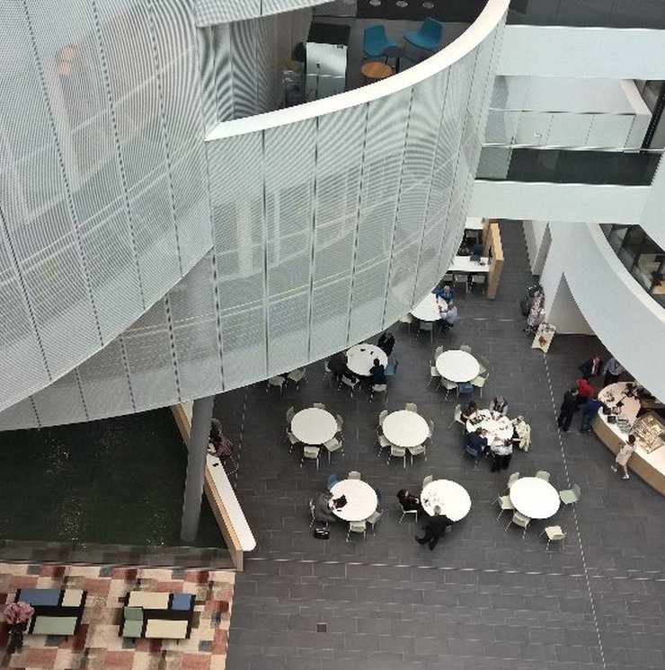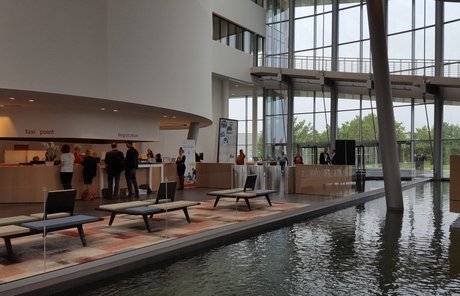 Barco Headquarter: il nuovo quartier generale di quest’azienda belga, specializzata in prodotti HiTech, acquista un carattere moderno e deciso grazie ai pavimenti in gres porcellanato effetto pietra Matrix. Le intense venature naturali e la tonalità Dark donano ad ingresso, sala d’attesa e aree comuni dell’imponente edificio un’atmosfera informale e autentica.