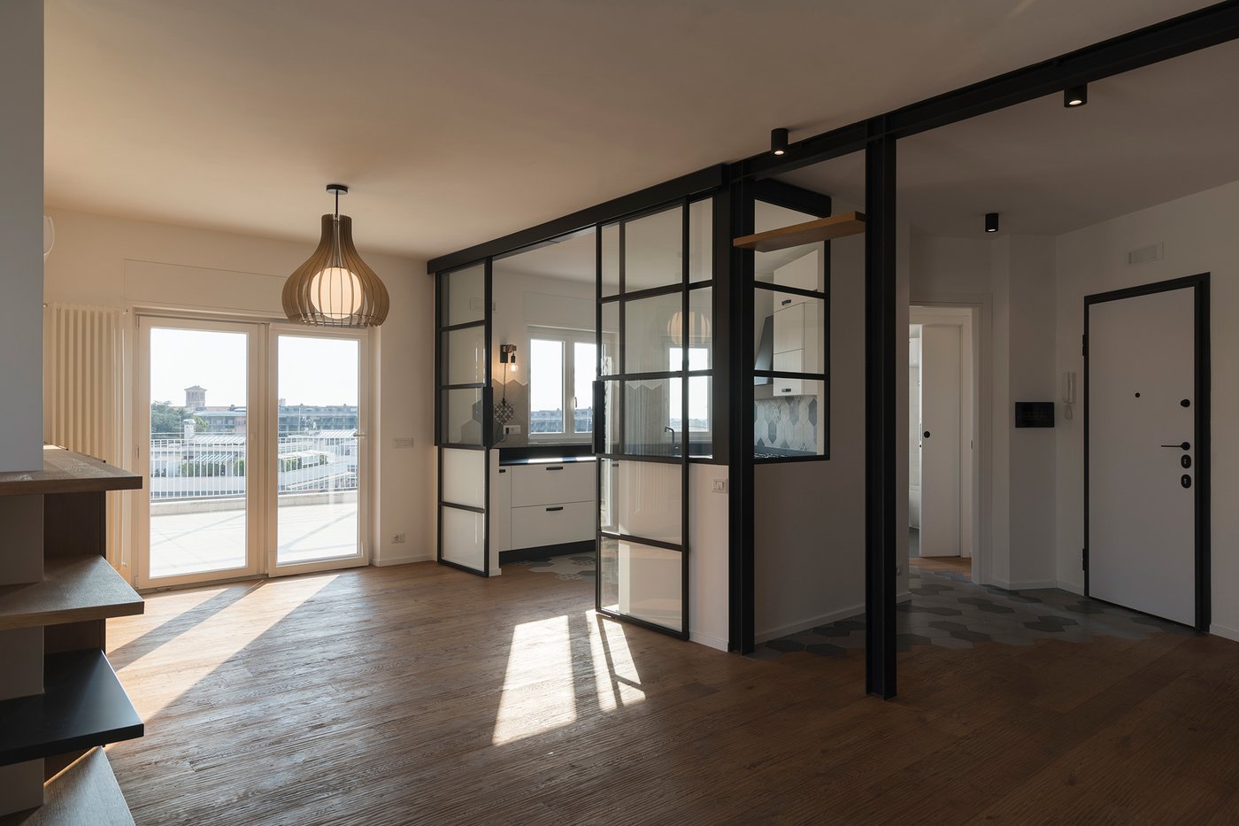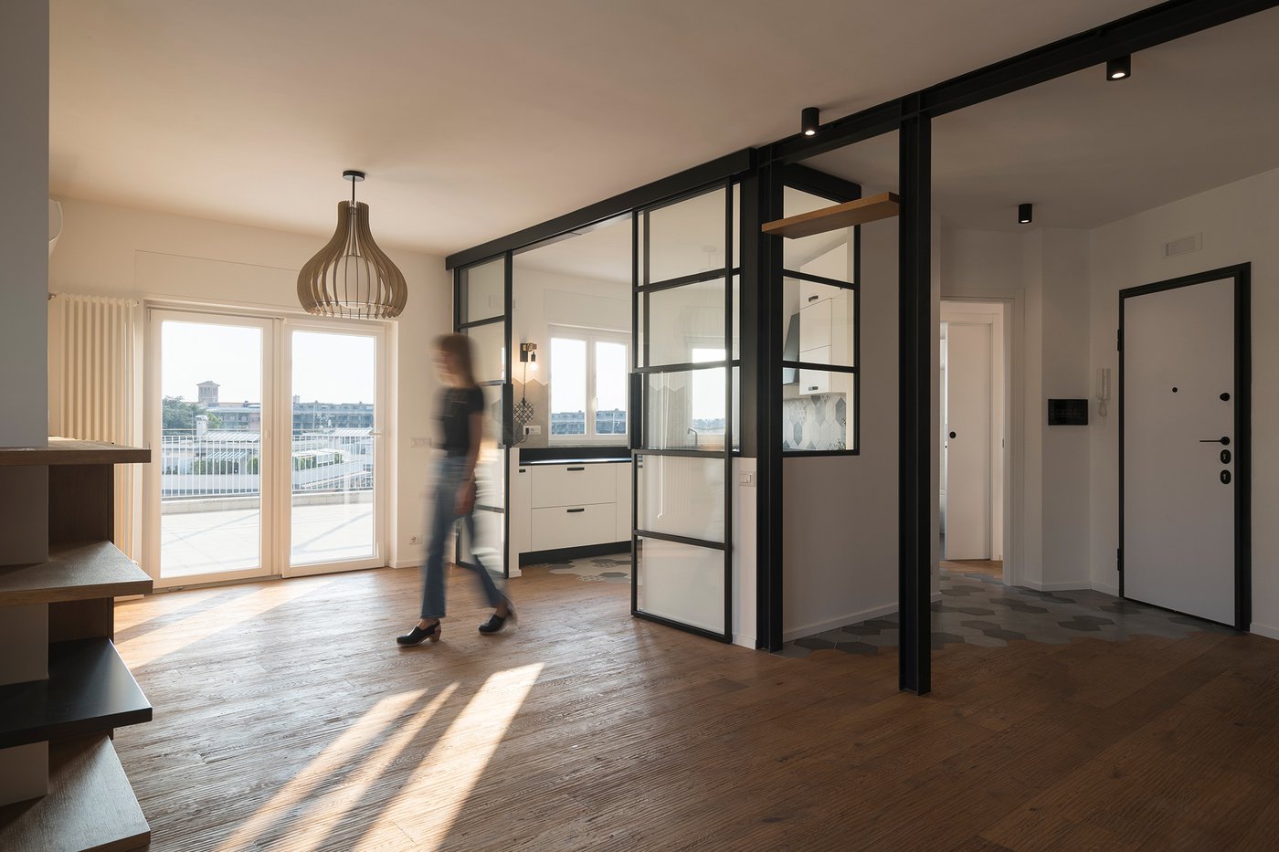 L’esigenza di avere propri spazi, intimi e privati, all’interno della propria casa. Un bisogno sentito da molti, e pienamente soddisfatto in questo progetto di ristrutturazione residenziale di Roma. Dall’unione di due appartamenti adiacenti, situati al piano attico, è nato una nuova residenza, totalmente da reinventare.