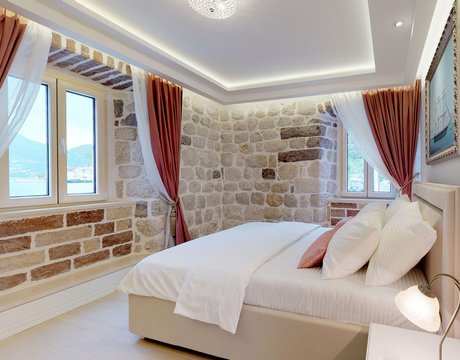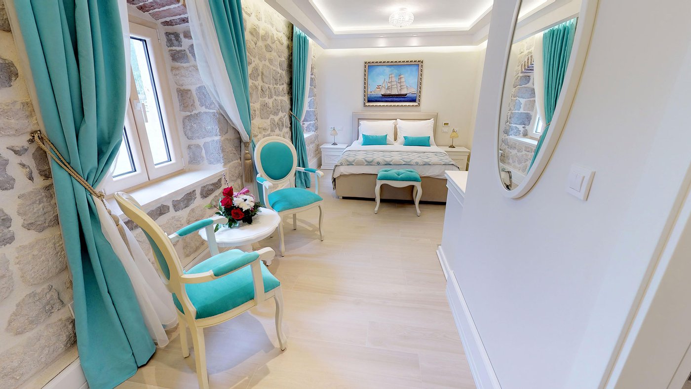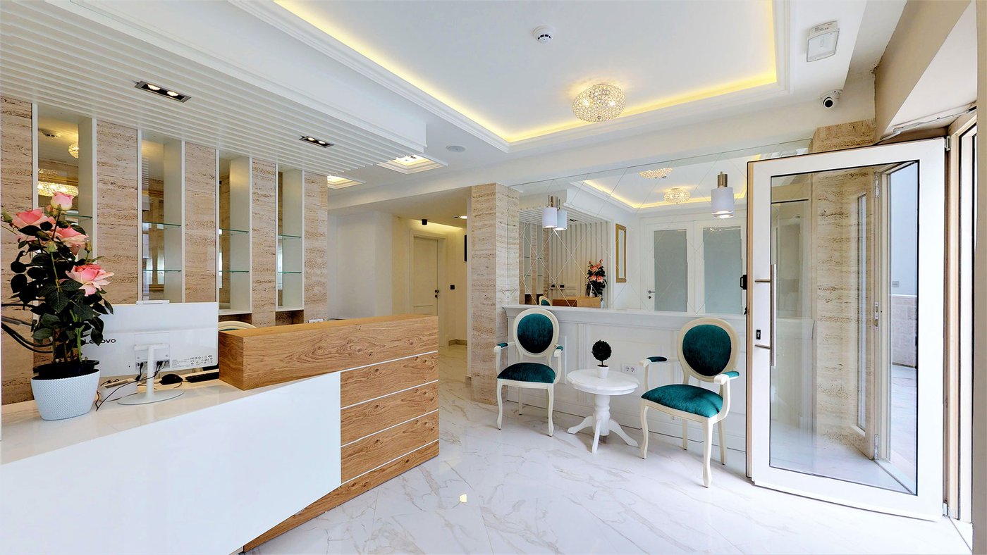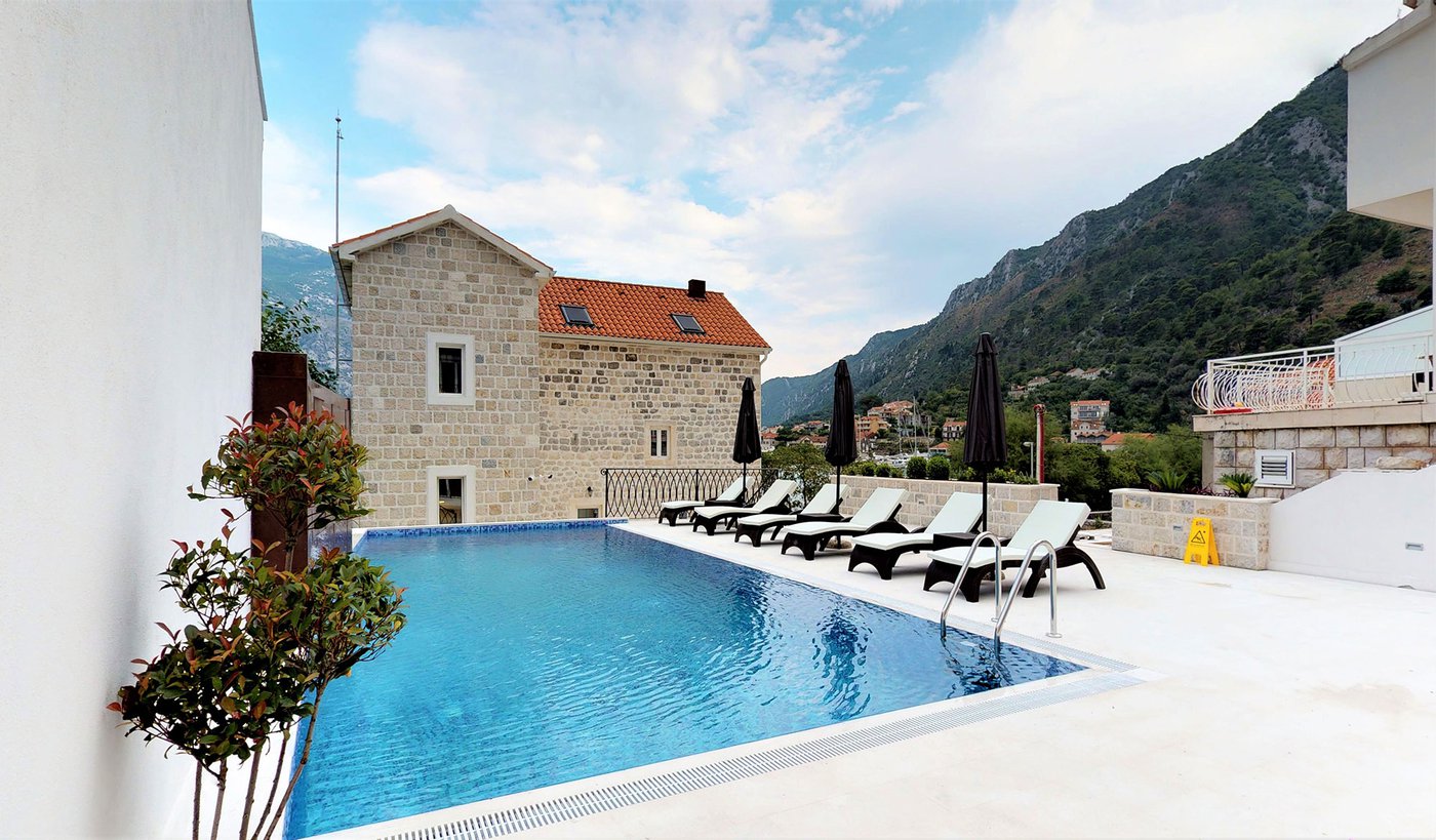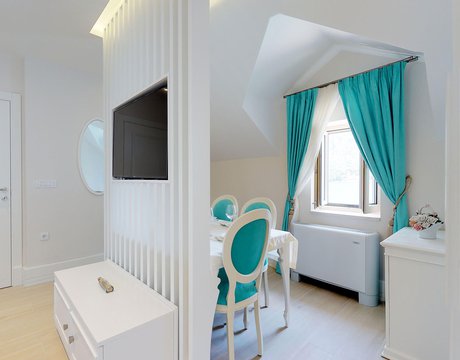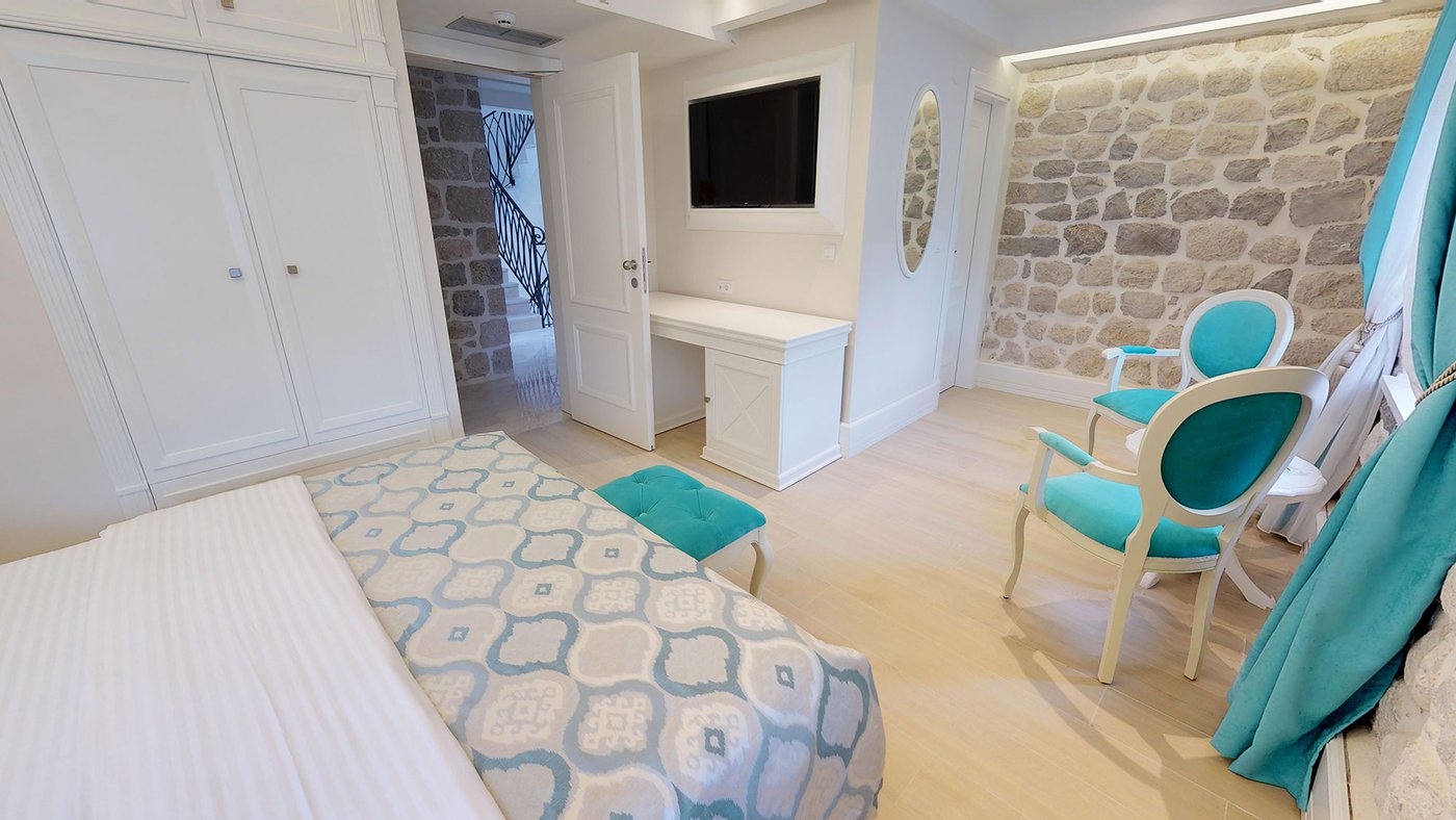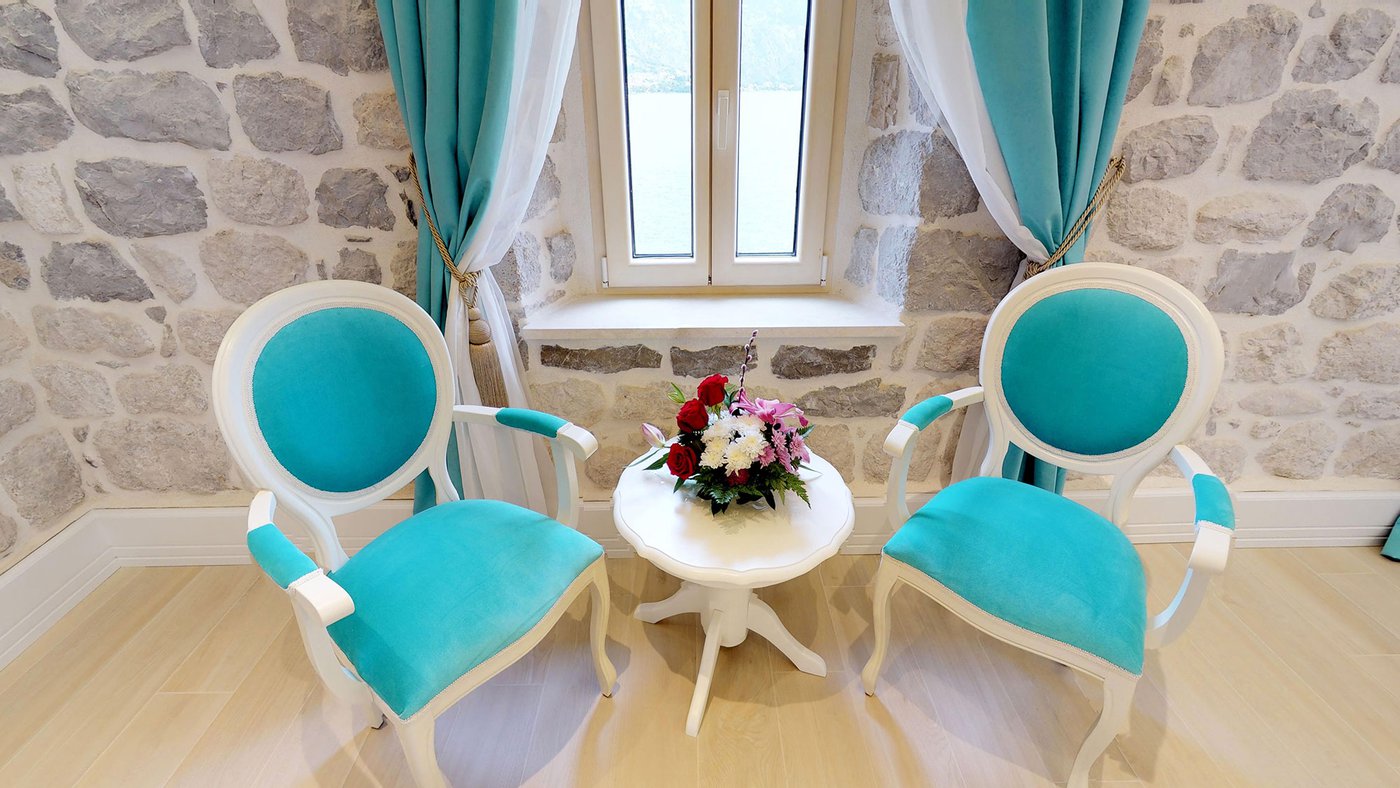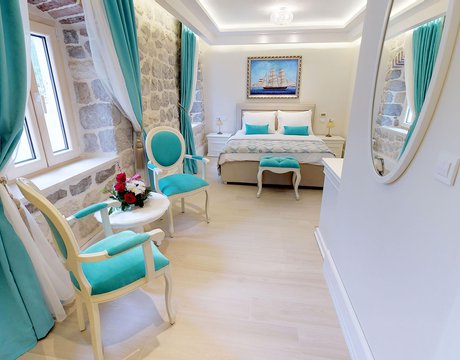 Nell'elegante Hotel Libertas, affacciato sulla Baia di Kotor, gli ospiti vengono accolti dalla serie ceramica in gres effetto marmo Motif Extra, perfetta nella variante Gold Reflex per donare un tocco luminoso e raffinato alla Reception. Le stesse superfici effetto marmo si ritrovano anche nell’ampia Sala Ristorante accostate ad arredi chiari e sedute imbottite dai colori decisi.