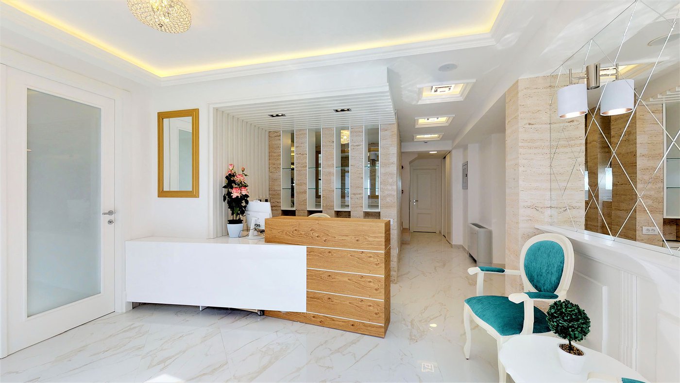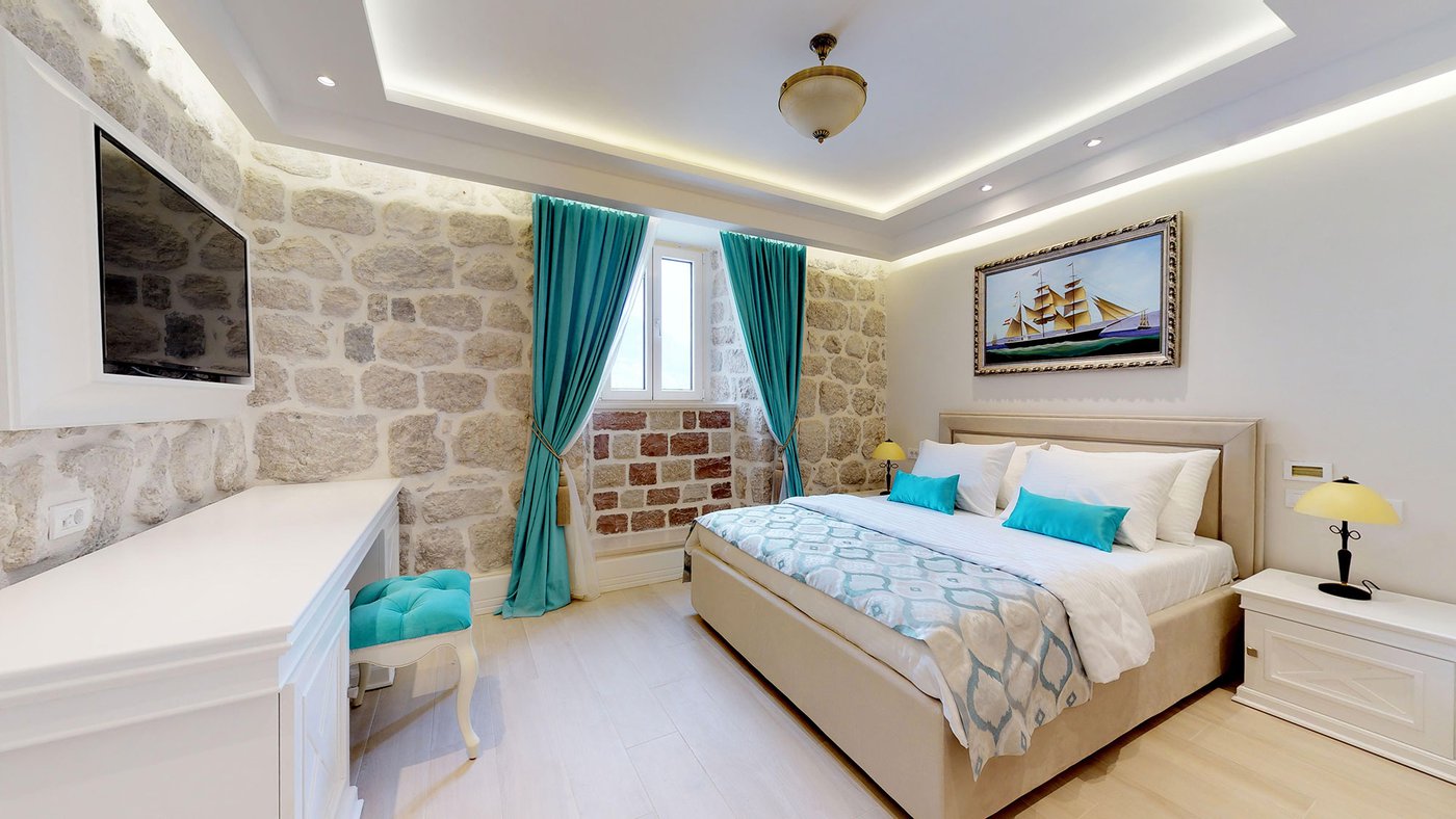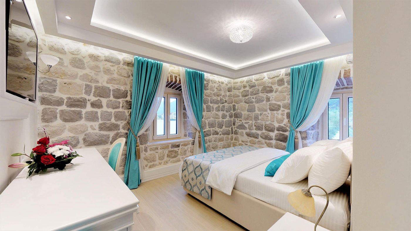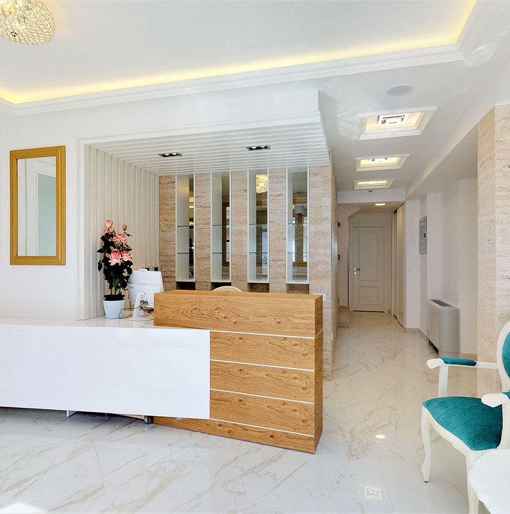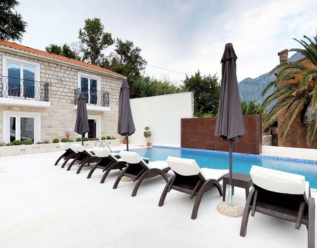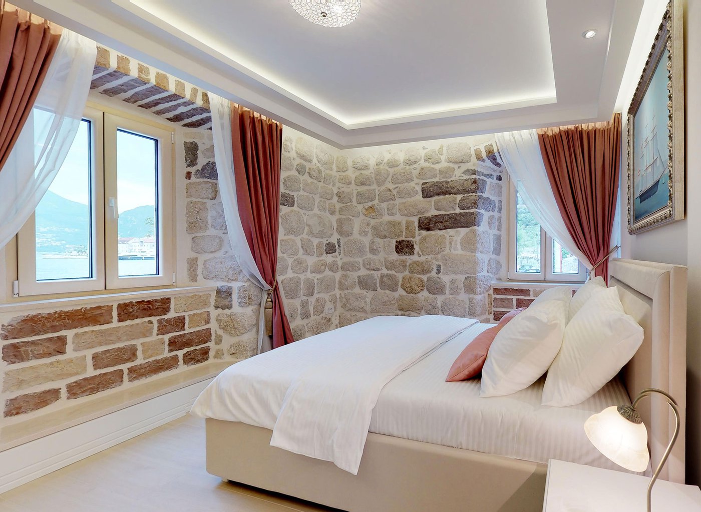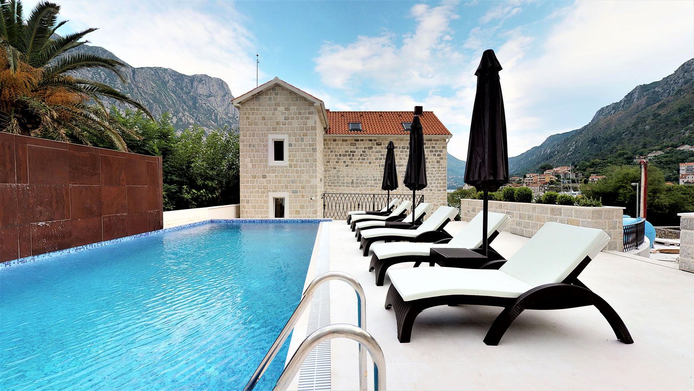 Nell'elegante Hotel Libertas, affacciato sulla Baia di Kotor, gli ospiti vengono accolti dalla serie ceramica in gres effetto marmo Motif Extra, perfetta nella variante Gold Reflex per donare un tocco luminoso e raffinato alla Reception. Le stesse superfici effetto marmo si ritrovano anche nell’ampia Sala Ristorante accostate ad arredi chiari e sedute imbottite dai colori decisi.