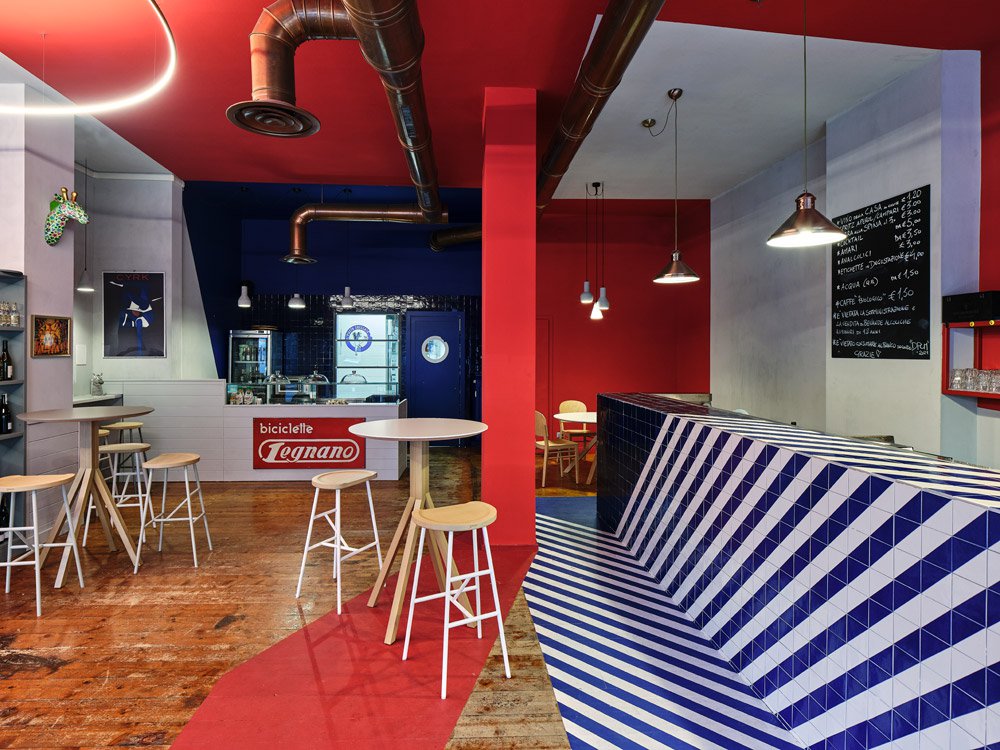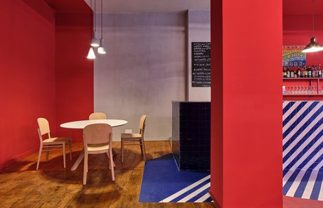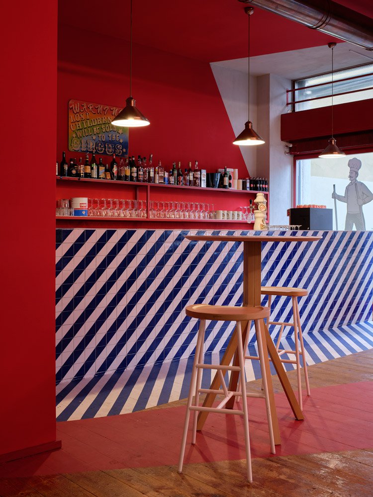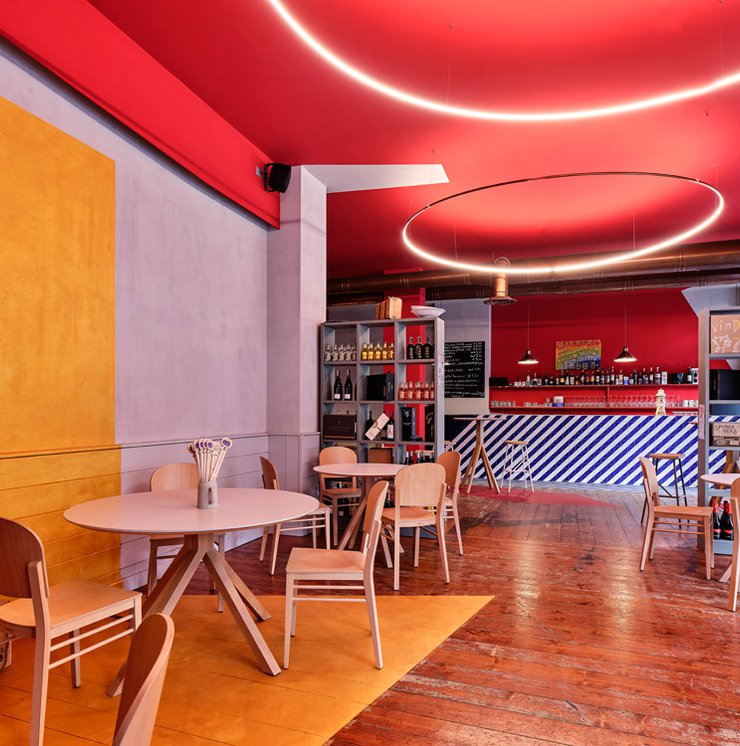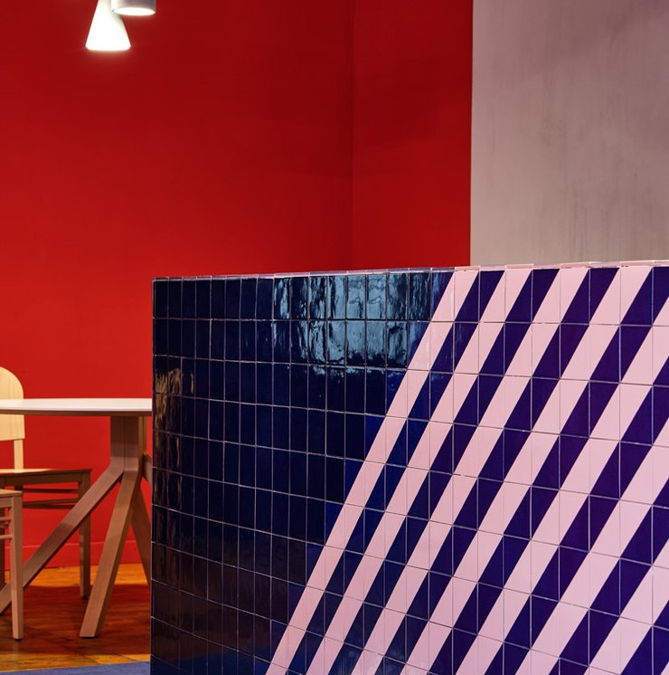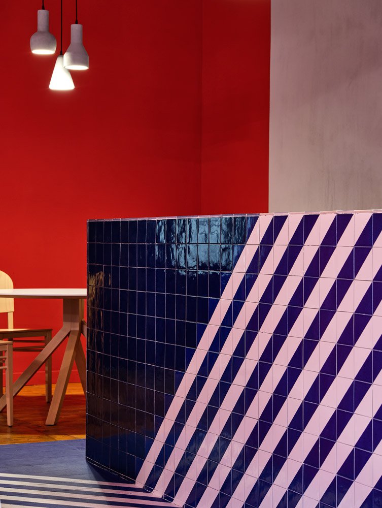 Con i loro brillanti colori smaltati e gli originali patterns geometrici, le piastrelle maioliche di Marca Corona sono perfette per trasmettere carattere e vivacità a questo ristorante dallo stile eccentrico, ma incredibilmente accogliente.