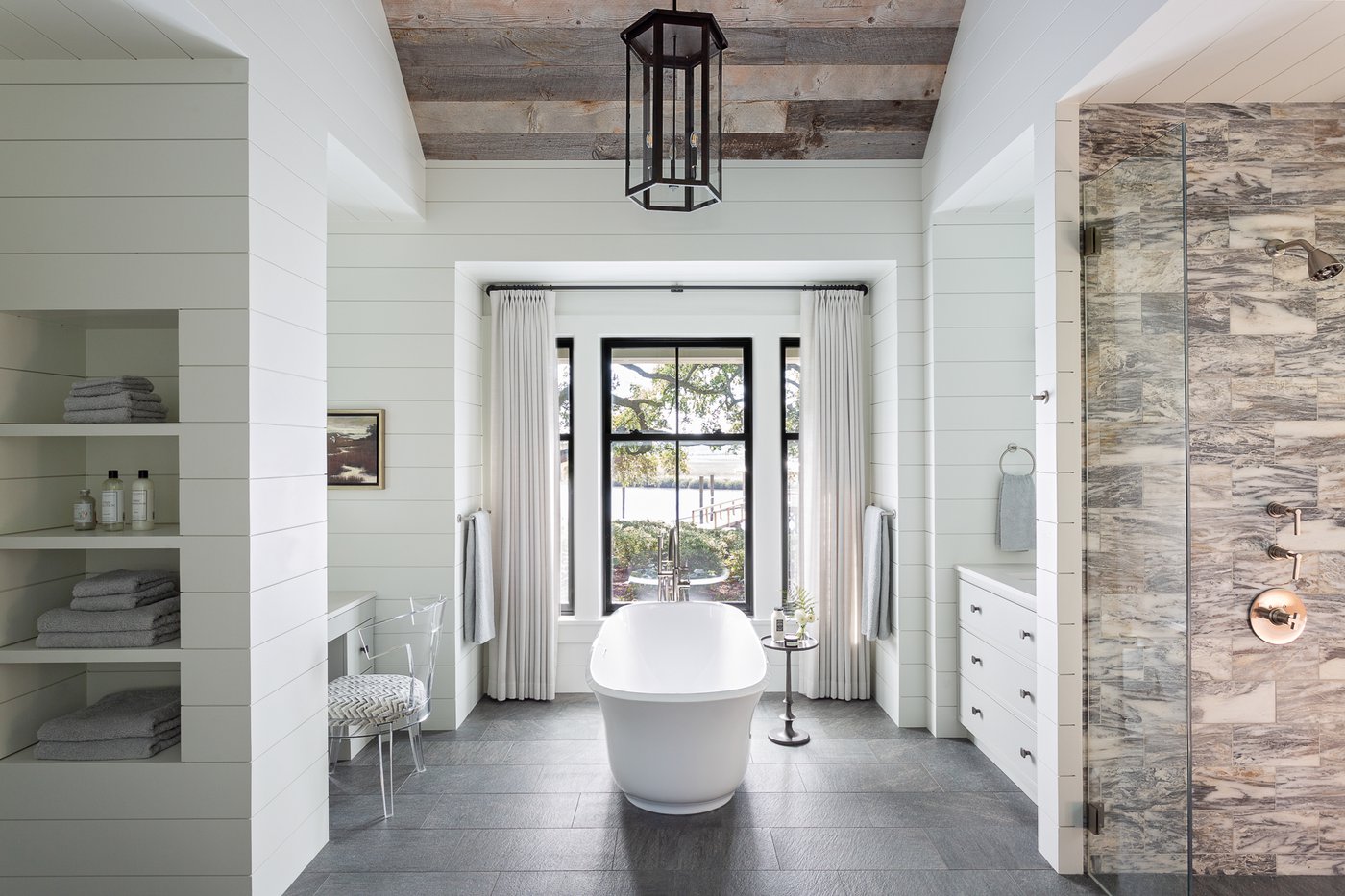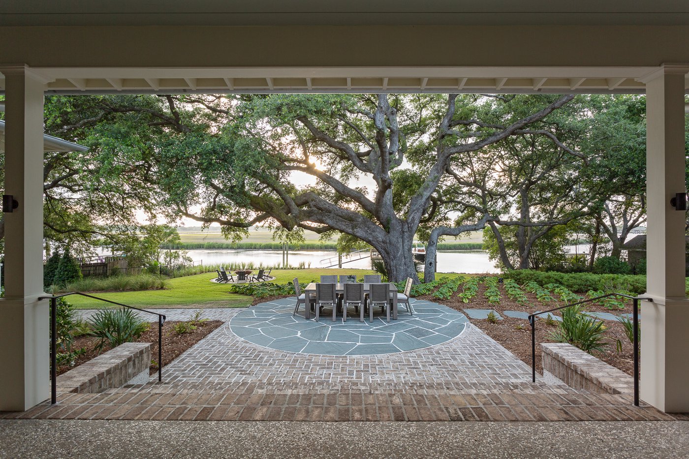 Sulle rive del James Island Creek, abbracciata da un bosco di querce secolari, dove sorgeva un ampio ranch negli anni ’50, oggi si trova una residenza esclusiva dallo stile Lowcountry, rivisitato in chiave contemporanea. Costruita per accogliere la luce, che inonda ogni stanza grazie alle ampie grandi vetrate, quest’abitazione privata è totalmente immersa e affacciata nel verde circostante.